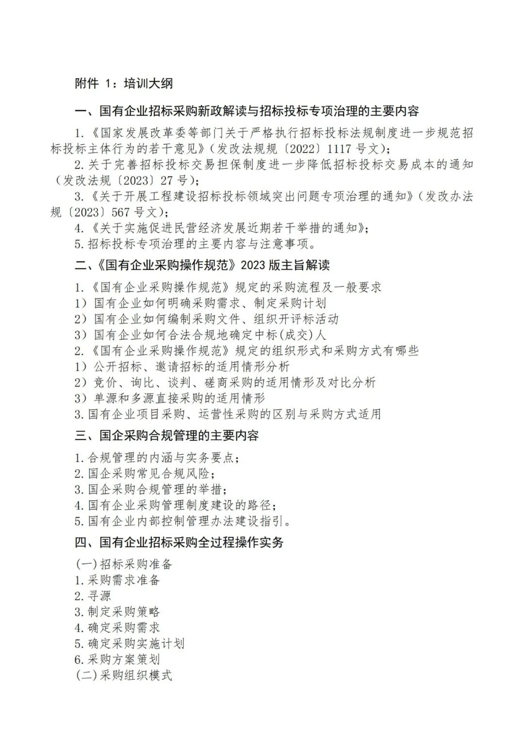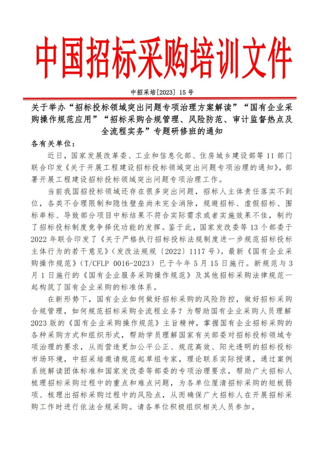 “招标投标领域突出问题专项治理方案解读”“国有企业采购操作规范应用”“招标采购合规管理、风险防范、审计监督热点及全流程实务”