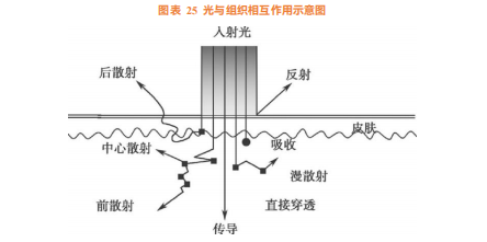根据激光产生的工作原理,可以发现激光具有单色、相干、平行、高能量四大特性。单色性:激光工作物质发生粒子数反转后受激释放出光子,这就决定了激光的波长,使得激光的波长是单一的,具有单一颜色。组织中不同的物质均可吸收特定波长的激光能量,进而产生相应的效应。激光的单色性使得选择性光热作用成为可能。相干性:激光的产生要经过谐振腔的统一化,使得激光的光子振动频率、方向和传播方向等方面一致,即激光的光波具有时间和空间上的高度统一性。平行性:激光在传播方向上,是平行沿某一直线传播的,很少发生弥散,这源于激光光波的相干性。高能量:激光的亮度与阳光之间的比值是百万级的,能量极高,这是由激光的单色性和相干性决定的。激光与生物组织的相互作用是一个多种因素决定的复杂过程。激光照射到生物组织时,会经历反射、散射、吸收、透射四个物理过程。生物组织是由各类不同成分的细胞和细胞间质组成的非均匀物质,由于不同的生物组织结构及电磁学特性的不同,进一步表现为对于光的反射、散射、吸收和传导特性也有较大差异,因此激光与生物组织相互作用结果的表现也有所不同。不同波长的激光只能与特定固有频率的生物分子之间存在具有生物效应的相互作用,因为生物分子对于激光光子能量的吸收具有频率选择特性。