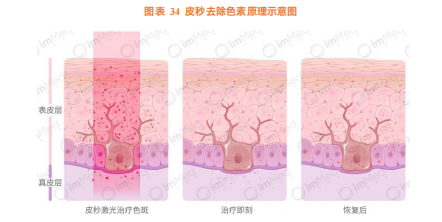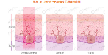 皮秒激光是色素性疾病的终极解决方案,可以达到很好的祛斑效果。皮秒激光可用于治疗多种表皮及真皮色素增加性疾病,对于雀斑、日光性黑子、太田痣等疾病疗效理想;对于咖啡斑、雀斑样痣等疾病有效,但仍有一定的复发率。对于表皮色素增加性疾病如雀斑、日光性黑子、咖啡斑等,可使用 532nm Nd:YAG 皮秒激光或 755nm 翠绿宝石皮秒激光治疗。治疗参数应依据患者的皮肤类型和皮损颜色设定,一般以轻度白霜反应作为治疗终点。真皮色素增加性疾病如太田痣、获得性太田痣样斑等,可使用 755nm 翠绿宝石皮秒激光、1064nm Nd:YAG 皮秒激光治疗。治疗间隔一般为 3-6 个月,治疗效果理想,一般数次治疗后可达到痊愈。因此皮秒激光作为输出脉宽在皮秒级别的激光器,将在治疗纹身及大部分色素增加性疾病中发挥积极的作用。