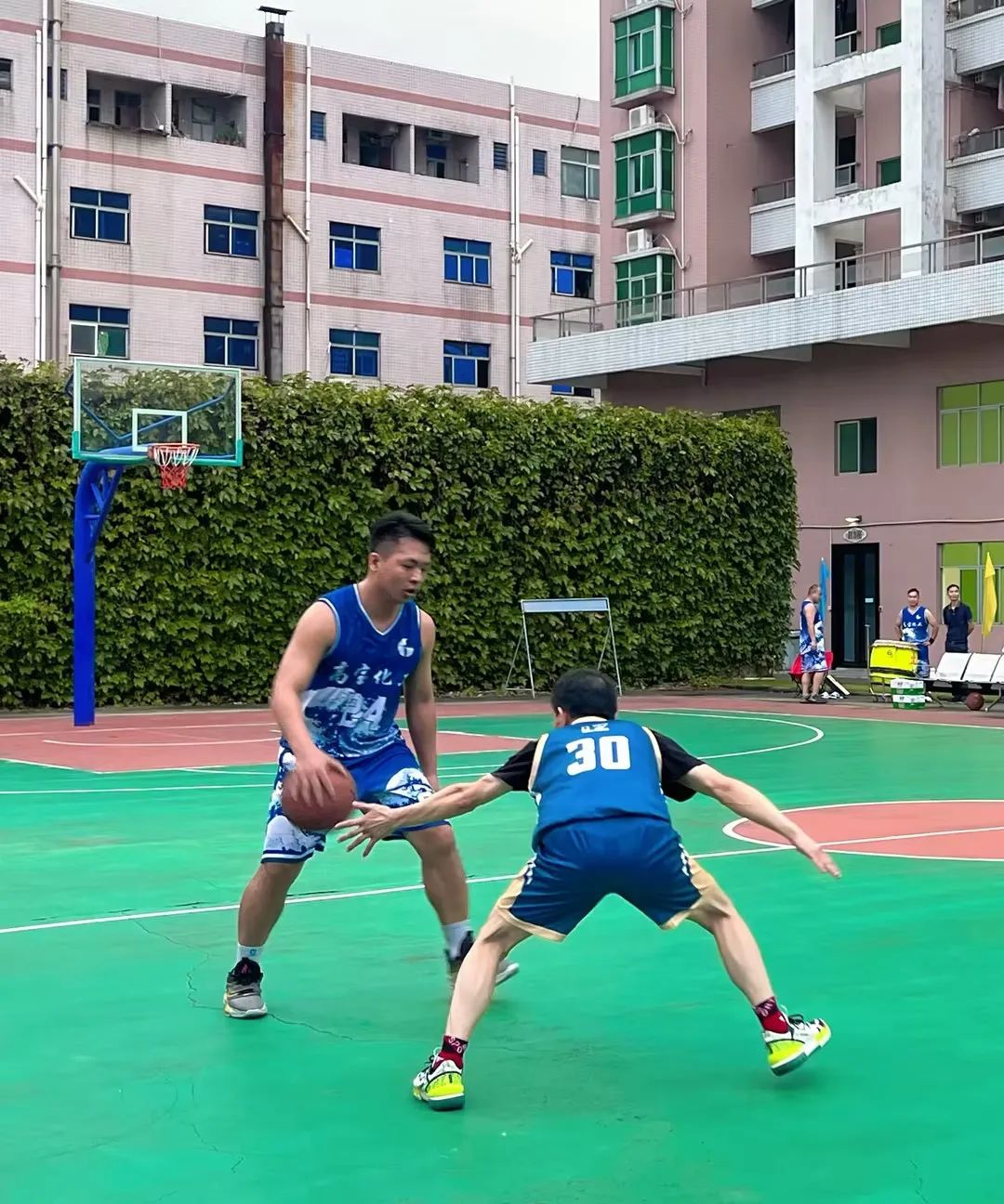高宝化工:“加油”,大湾生物:“加油”,这是来自8月17日晚高宝集团内部“联谊杯”第二天的比赛现场呐喊声,比赛一开始,现场的气氛瞬间拉满,好不热闹,球场上的队员个个志在必得,分分必争,场边“啦啦队”的加油助威声也是响彻整个高宝园区,在激烈的角逐中,一吨兄弟(高宝化工)险胜湾仔队(大湾生物),最终比分45:39。