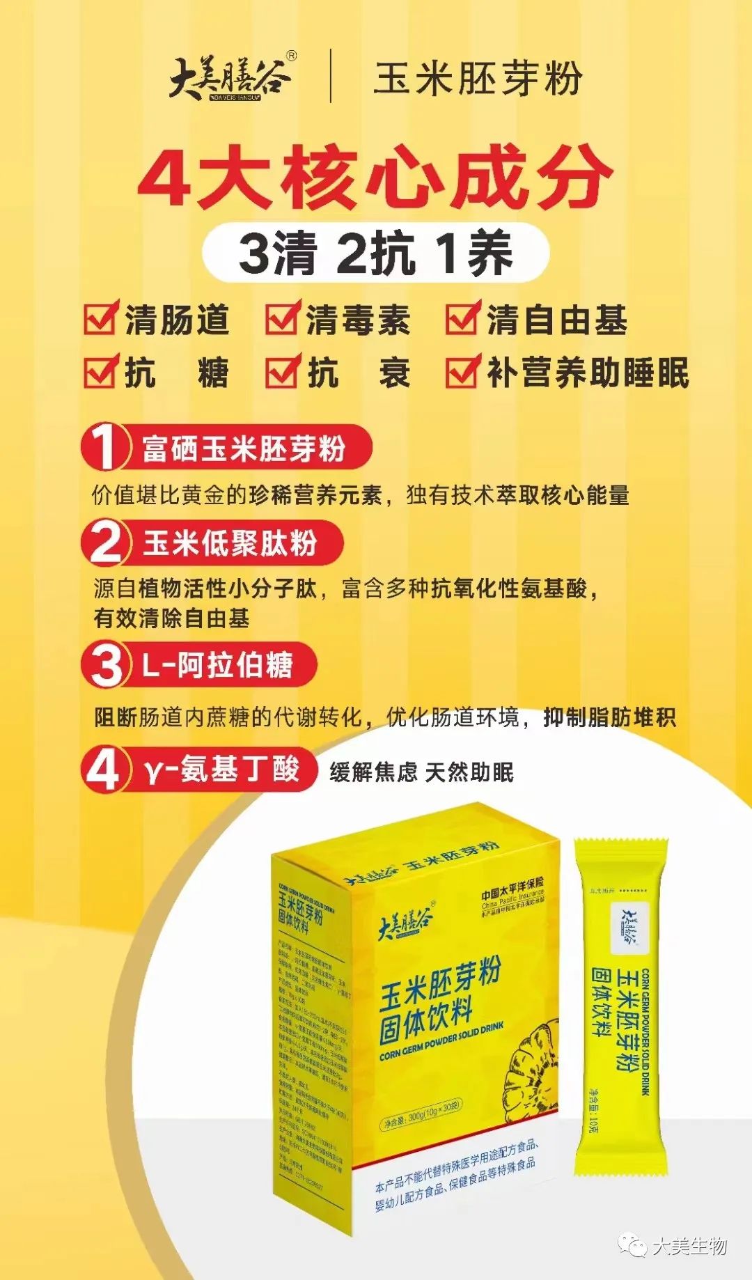 参展产品:大美膳谷玉米胚芽粉、大美膳谷鱼胶原蛋白三肽、伯格益美益生菌、大美膳谷胶原蛋白肽、雪里迷小分子肽、大美膳谷叶黄素酯片、大美膳谷胶原蛋白枸杞原浆、雪里迷螯合钙等。欢迎广大客户莅临洽谈!