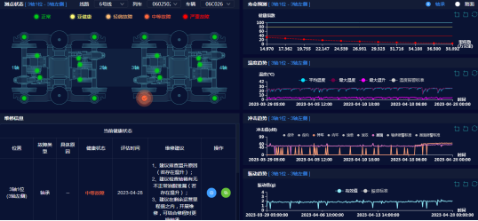 恰逢2023年“五一”黄金假期前夕,长沙6号线装备的“唐氏CT”(城轨车辆走行部车载故障诊断系统)自动发出安全预警,准确预报列车轴箱轴承故障,地铁公司及时采取了扣车维修措施,强有力的保障了列车运营安全,规避了长沙“五一”假期地铁运营的重大安全风险,社会安全效益显著。