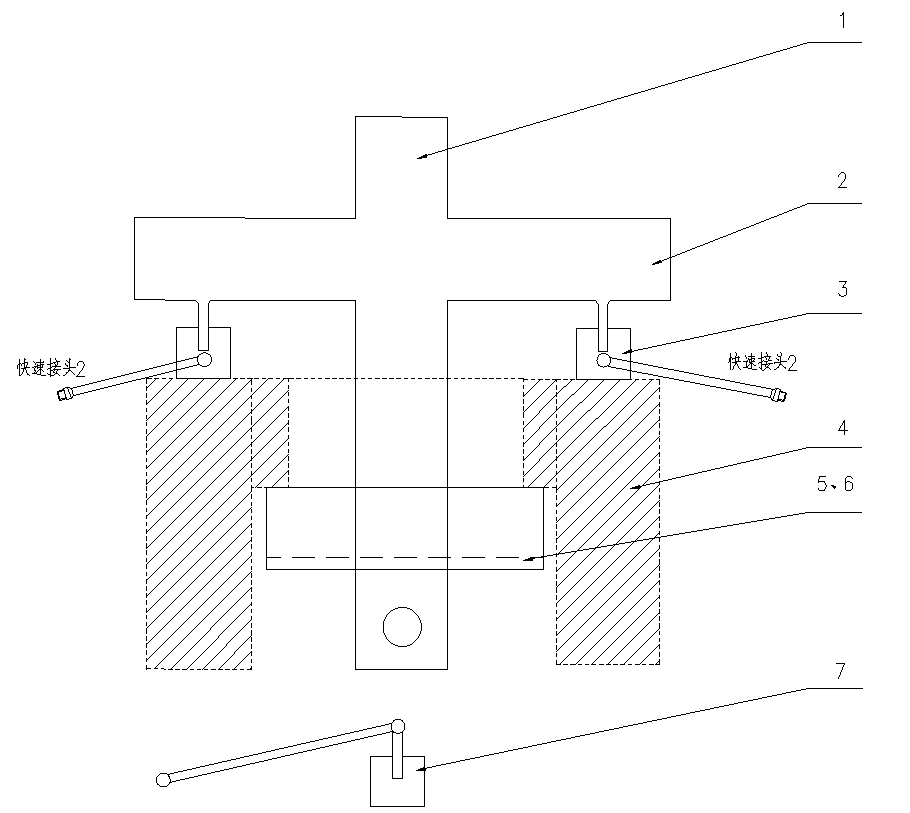 5、6——下部的两块钢板3,4所焊接的U型槽(内侧开一个槽,可以使钢板1插入,M24的螺栓刚好可以穿过圆槽)