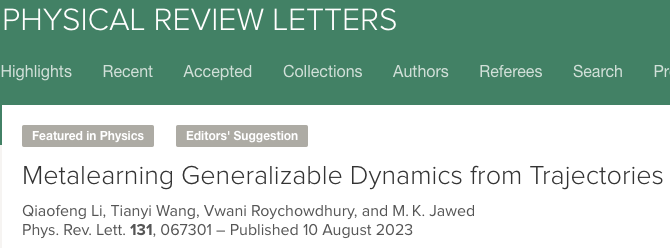 Metalearning Generalizable Dynamics from Trajectorieshttps://journals.aps.org/prl/abstract/10.1103/PhysRevLett.131.067301