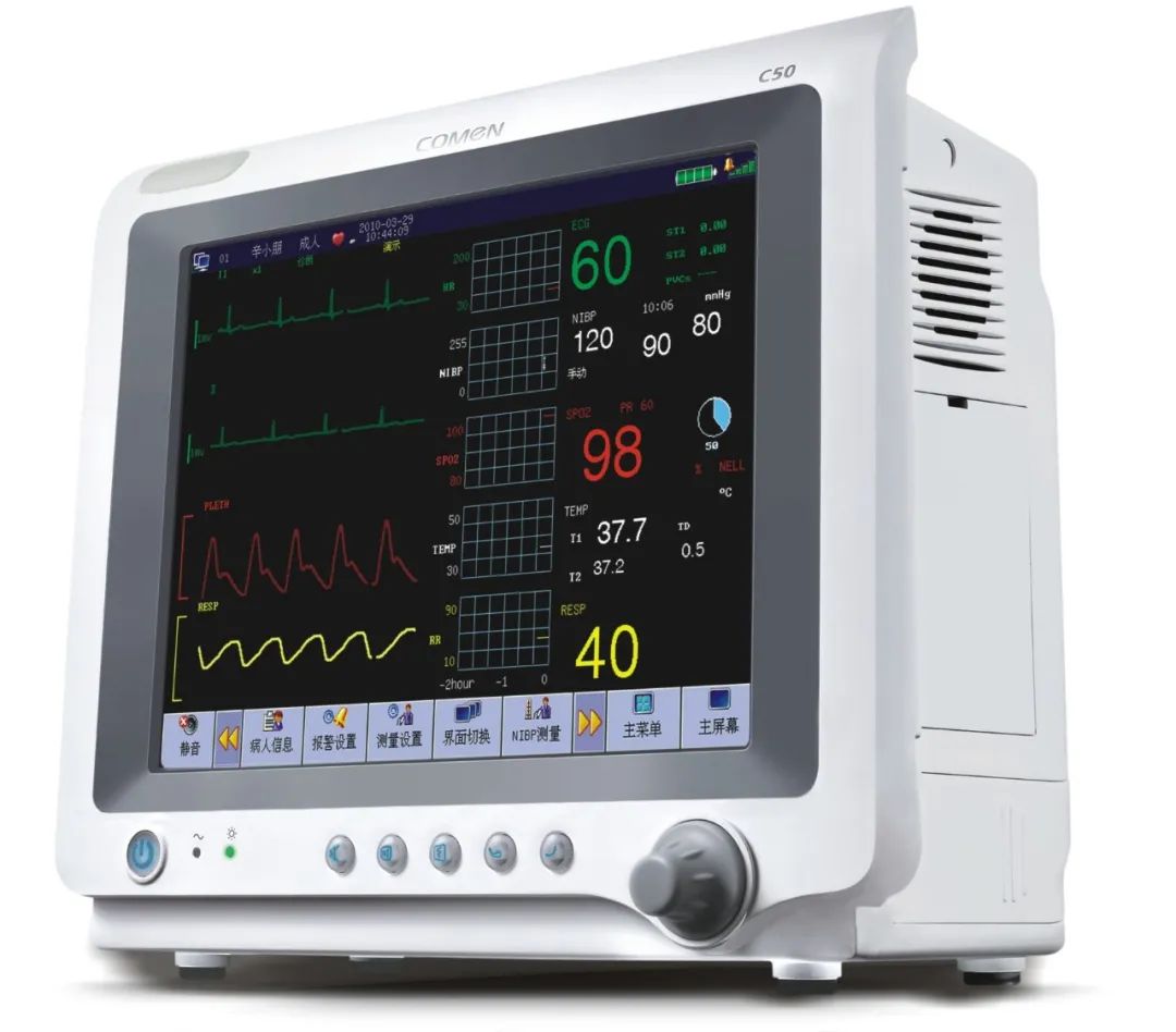 一般监护仪的监护参数包括心电、无创血压和脉搏血氧饱和度三部分,手术室内使用的监护仪会增加配置末二氧化碳监护功能。