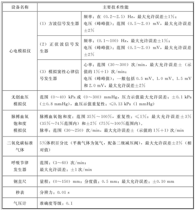 ②心电:电压测量误差、幅频特性一般在监护仪的II导联进行测量。对于具有记录输出的监护仪,可在监护仪显示屏幕上对波形进行测量,也可在记录纸上对输出的波形进行测量