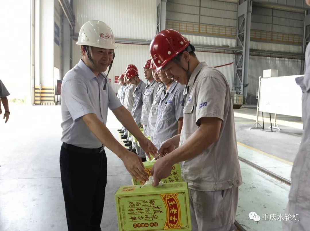 机电集团党委委员、副总经理周奎为公司员工送“清凉”