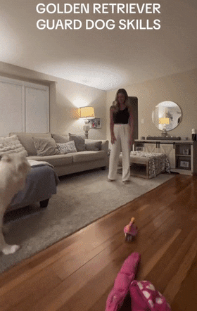 外国一位铲屎官买了个螃蟹玩具回家,没想到家里大金毛直接吓疯了!