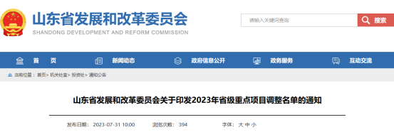标题:山东省发展和改革委员会关于印发2023年省级重点项目调整名单的通知