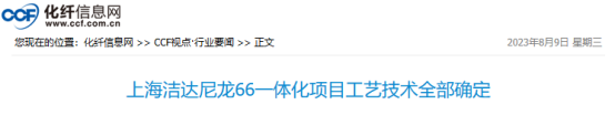 标题:上海洁达尼龙66一体化项目工艺技术全部确定