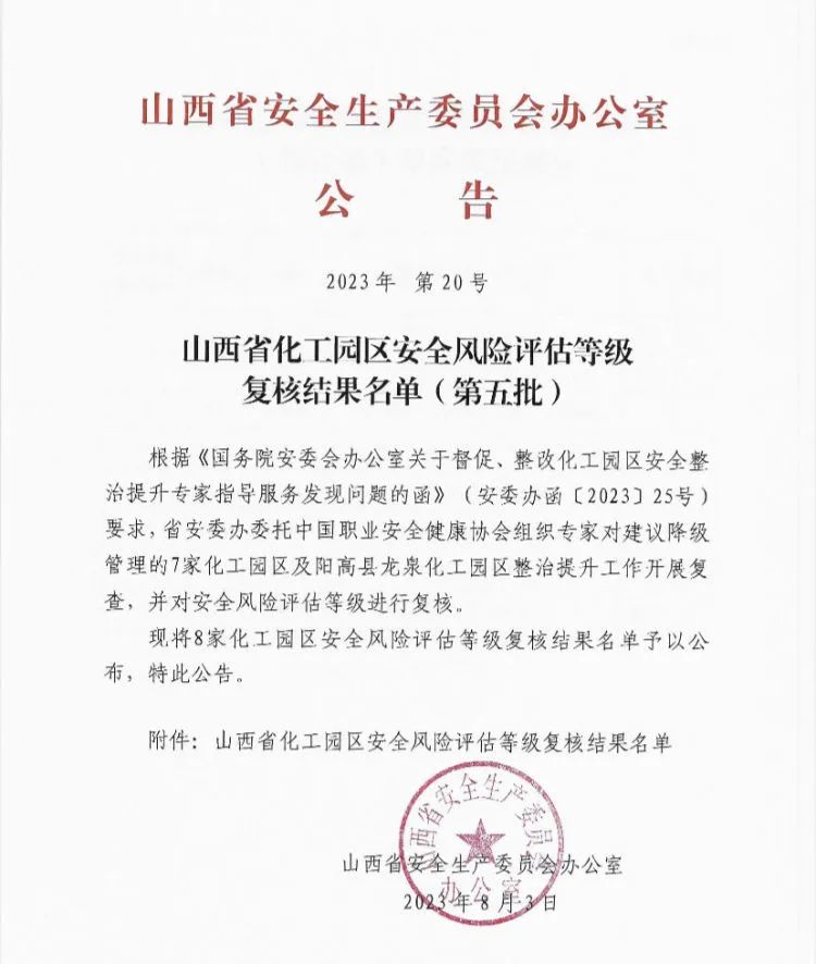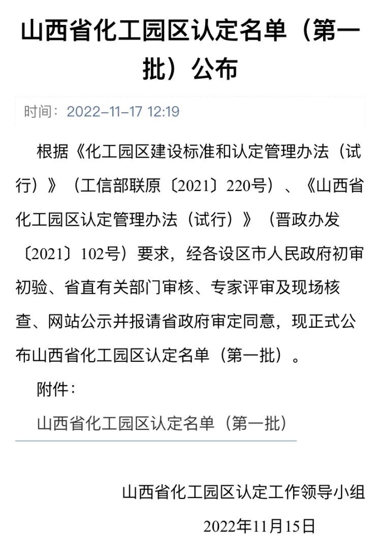 工业之秀 | 万荣县皇甫化工园区率先通过省级安全复核和评估认定