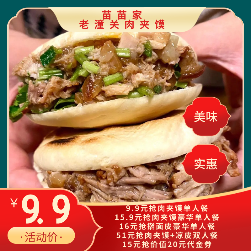 9.9元抢肉夹馍 +饮料一份,地道的陕西味,一口咬下满嘴肉!