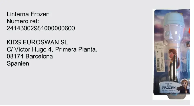 这款由迪士尼授权KIDS EUROSWAN 公司生产的《冰雪奇缘》手电筒因为有儿童窒息风险,现在已经被西班牙消费者协会要求下架
