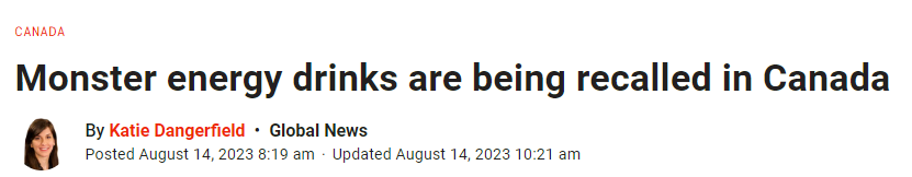 CFIA指出,Monster品牌所有口味的饮料都必须被召回,原因是这些饮料中咖啡因含量超标,而且没有英语和法语的双语标签。CFIA强调,尽管目前尚无饮用后报告疾病的案例,但若您在饮用后患病,建议立即联系医疗保健提供者看病。