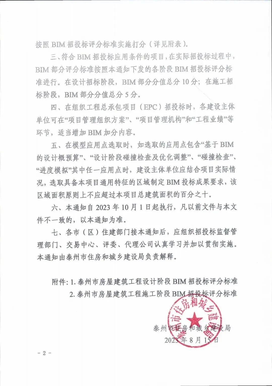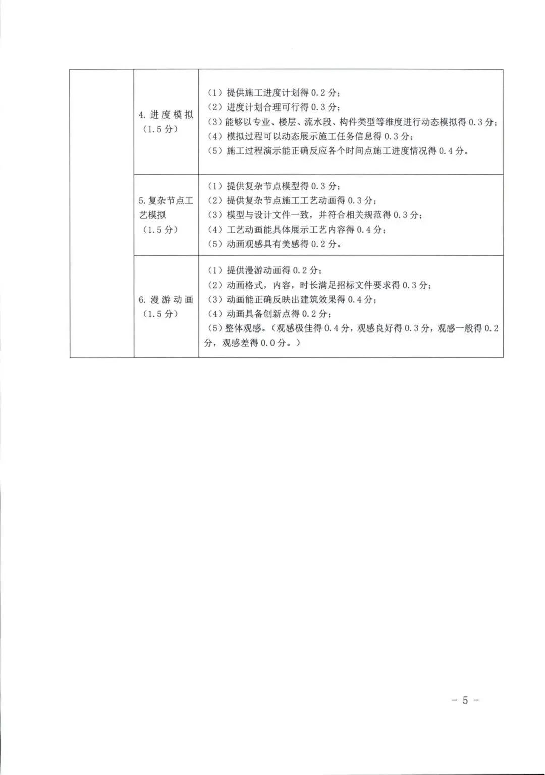 在设计招标阶段,BIM分值设定为10分;在施工招标阶段,BIM分值设定为5分。在组织工程总承包项目(EPC)招投标时,各建设主体单位可在“项目管理组织方案”“项目管理机构”“工程业绩”等环节,适当增加BIM加分内容。