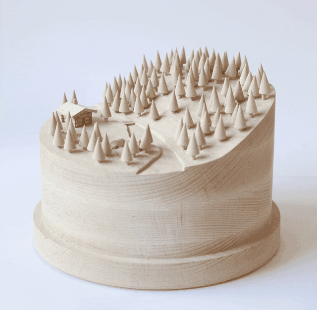 设计师 Thibaut MALET 来自法国,他擅长使用木材来创作产品和装置艺术。他去加拿大和南美旅行的时候,激发了创作灵感,把值得纪念的森林和小屋等景色存储下来,就有了以下的作品。