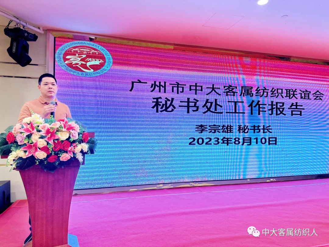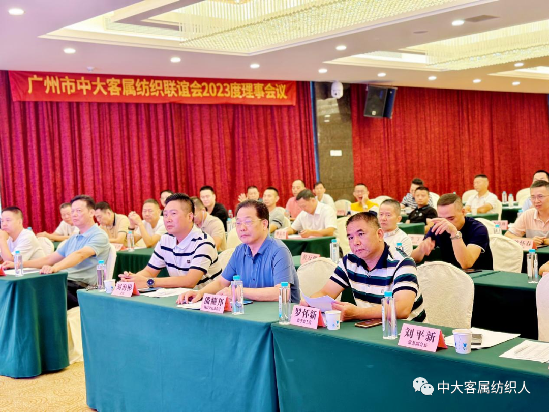 2023年8月10日上午,广州市中大客属纺织联谊会(以下简称我会)在清远国际酒店会议厅召开理事会议。会长刘海彬,执行会长潘耀邦、李伟洪、陈东波,监事会主席罗怀新,名誉会长袁雄辉、张建文,秘书长兼常务副会长李宗雄,常务副会长刘平新、刘文标、陈绍源、何伟洪,副会长罗定浩、韩远标、王伟强、黄万强、游启忠、李宇、董文华、江育文、黄东红、潘利平、曾怀春、廖志杰、王彬、陈嘉君、丘敏敏、黄自宏、赖翼华、陈远锋、王文国、张坚,理事长李南燕、蔡建忠,理事曾思远、陈志权、罗建安、刁振胜、张仁珊、楊峻凯、韩飘炎、杨向前参加会议。会议由常务副会长刘平新、副会长廖志杰主持。