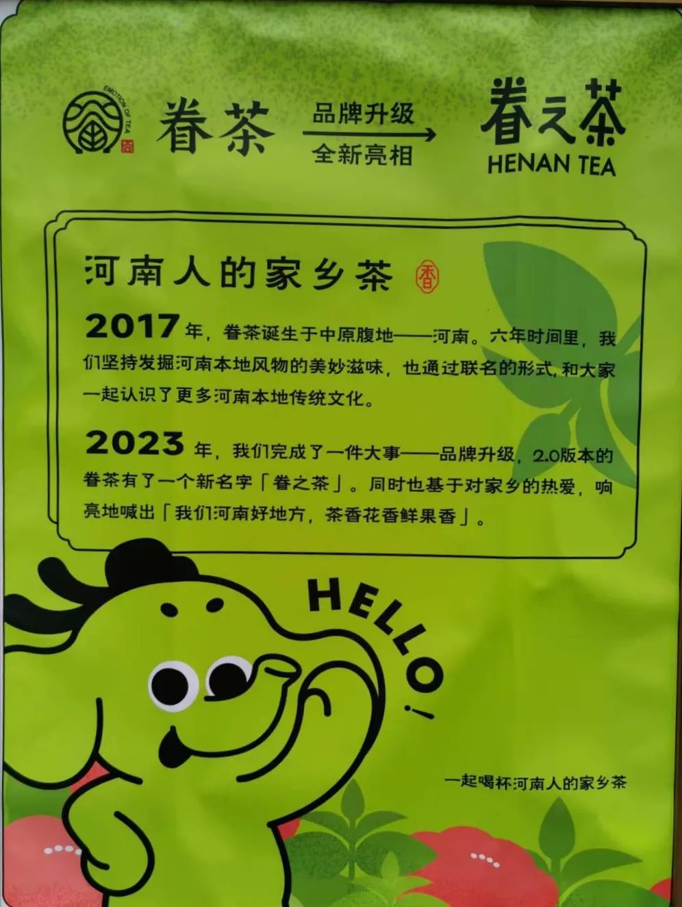眷茶此次品牌升级的策略有两个核心点,第一是突出地域属性,第二是审美降级。