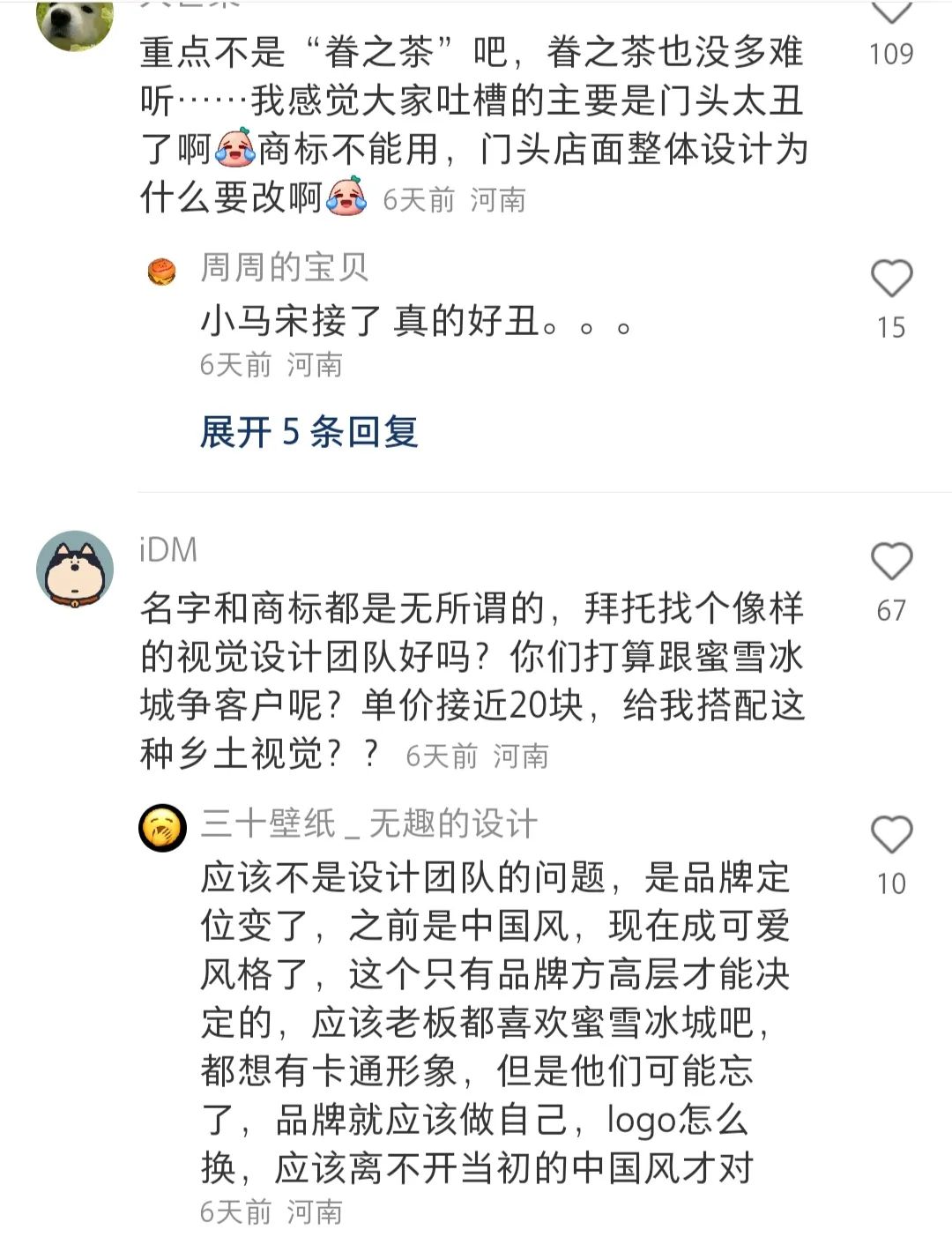理性的分析,都市白领阶层的审美可能会细腻一些,县乡镇一级的消费者可能会审美没有那么敏感没有那么细腻,但是,这不代表就是丑,丑和直接简洁的风格是有区别的,蜜雪冰城包括幸运咖的品牌形象就很简洁直接,甚至有些简单粗暴,但是很少有人吐槽丑的。