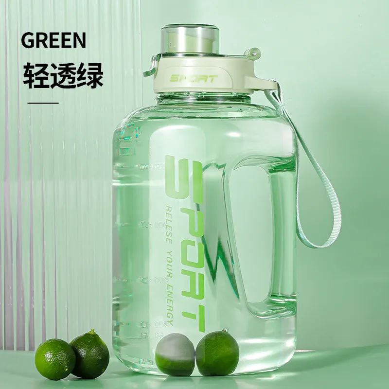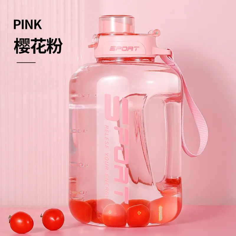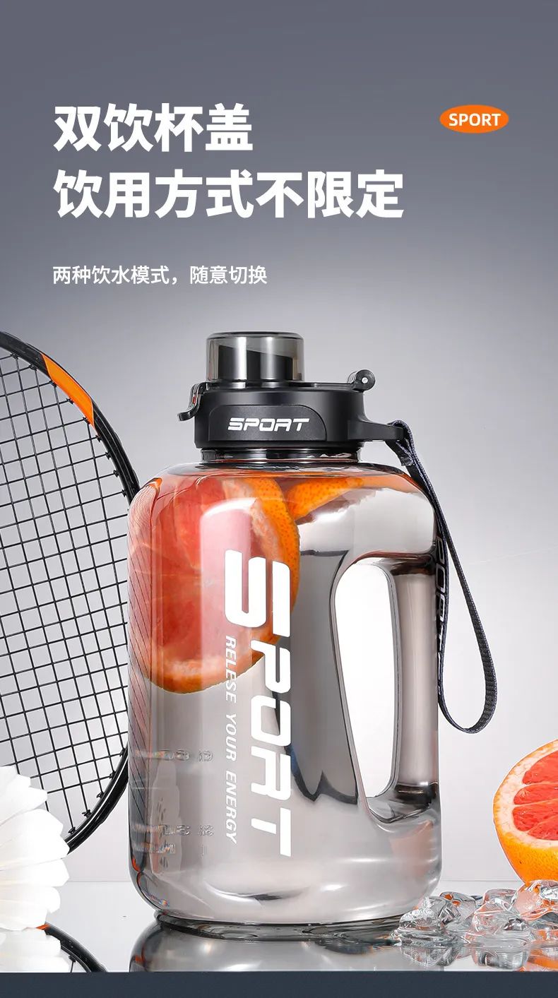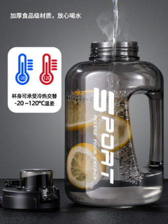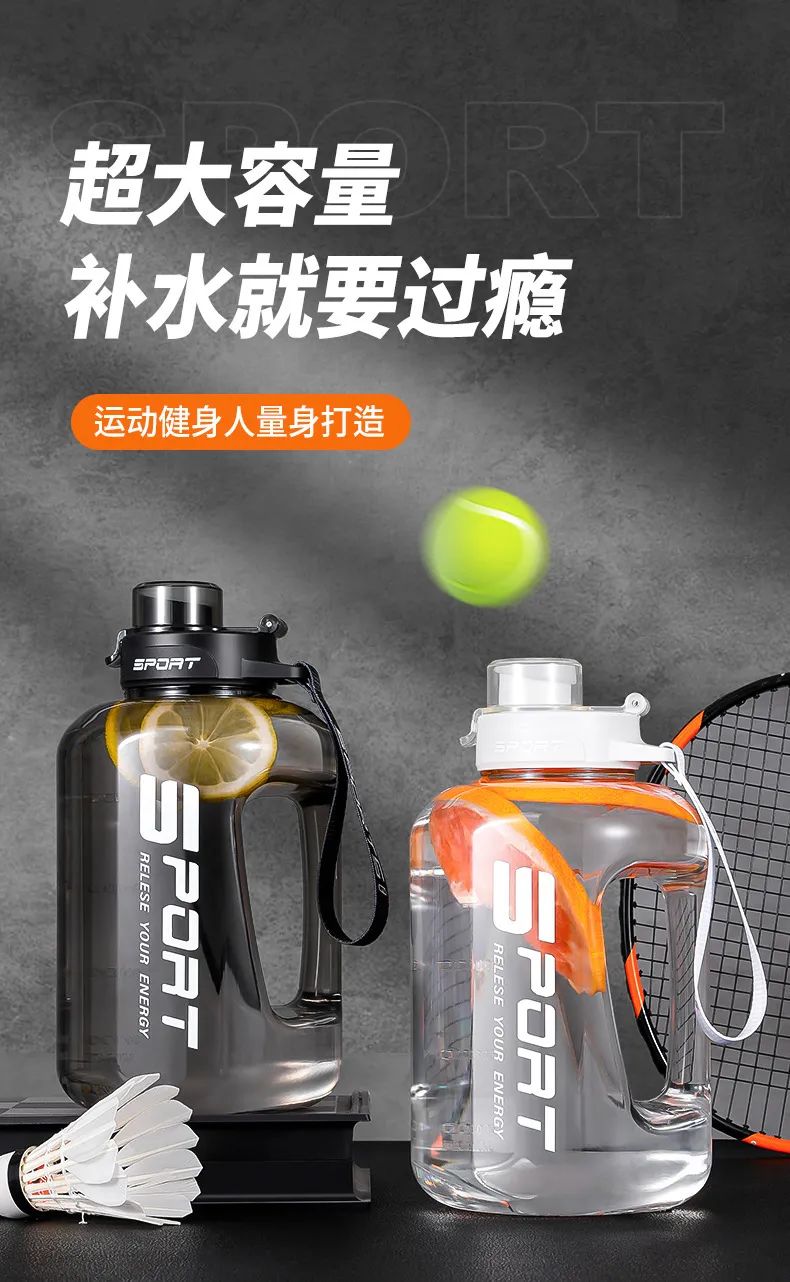 而这个大肚杯的亮点就是——大,最大啊的一壶有2.5L,实际可以装5瓶矿泉水。不管是室内健身,还是户外运动,一壶就能够给人体提供足够多的饮水量,再也不用来回接水了。