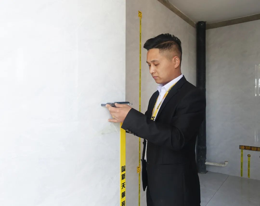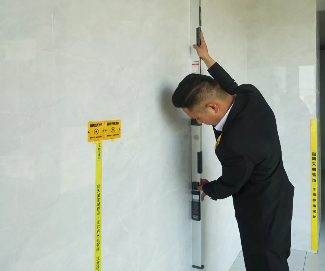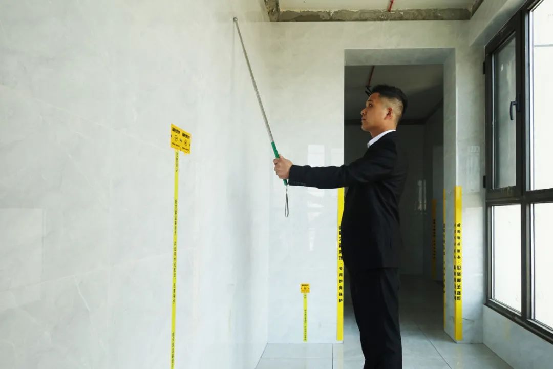 ▲ 1、施工前先对各墙体平整度、垂直度使用专用检测工具进行检测;