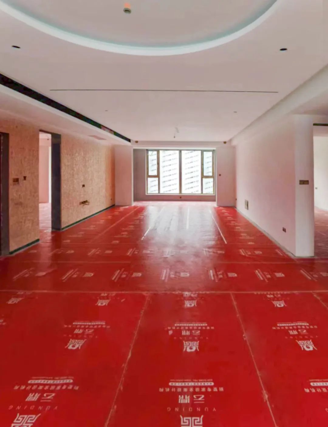▲ 4、自流平工艺为我公司2015年推出的多个欧标新工艺、新材料之一,此工艺可使水泥地面达到充分平整,也有效防止地面开裂,可大大提高木地板的使用寿命及美观效果。