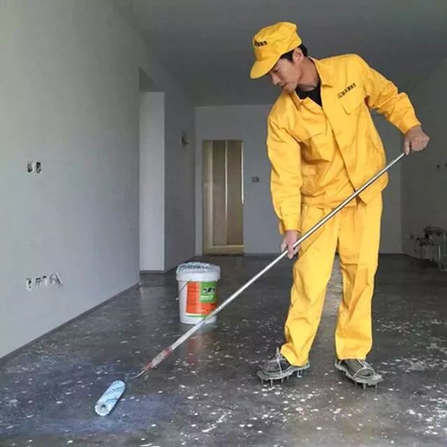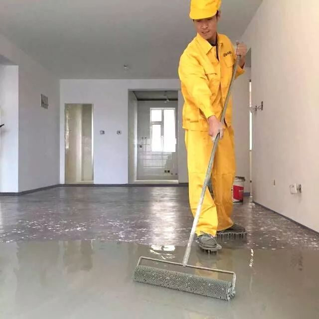 ▲ 1、将水性环保洁面剂滚刷均匀,间隔两小时后再进行自流平滚刷;