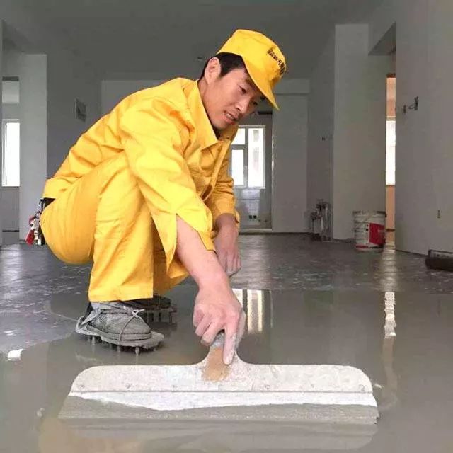 ▲ 3、先使用刮板将自流平灰浆刮平摊匀,再用消泡滚筒排除气泡,然后等其自然流平;