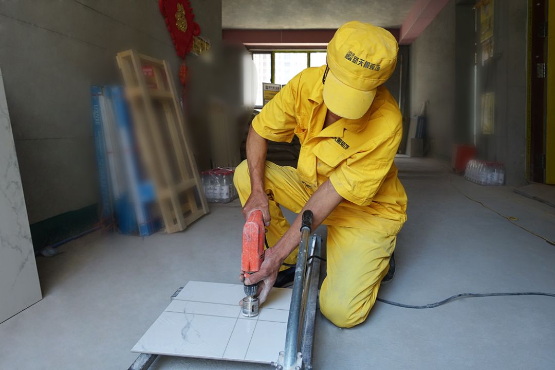3、铺贴时若发现残损砖可套裁或用在边缘压角处合理使用,如发现色差或尺差过大及时逐级上报处理;