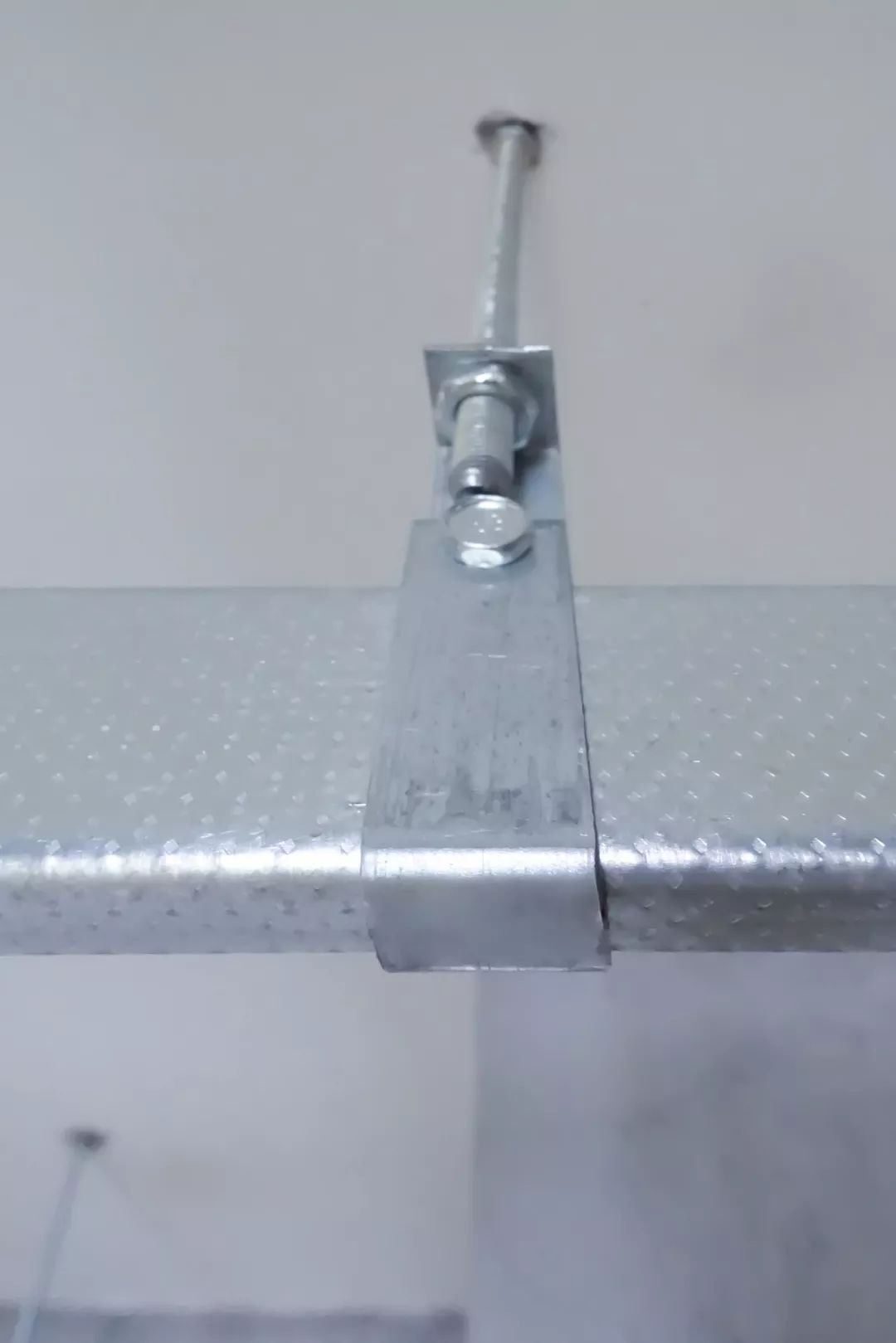 ▲ 3、顶面电锤打孔,预埋金属膨胀栓,配金属吊杆及挂件;