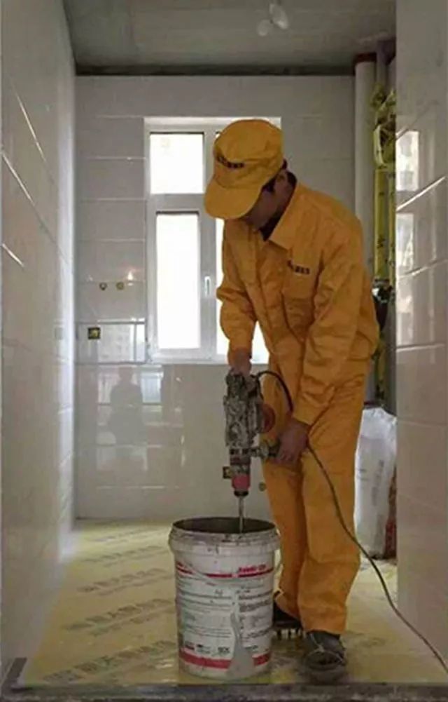 ▲ 2、使用电动工具将材料搅拌均匀后进行滚刷;