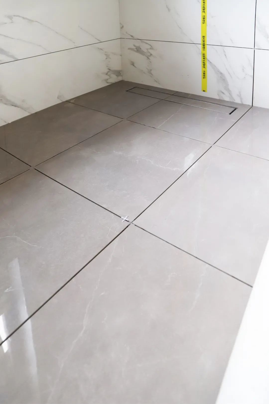 5、阳角碰角45度,拼缝均匀,无崩瓷,地面砖与墙面砖达到方正、垂直;