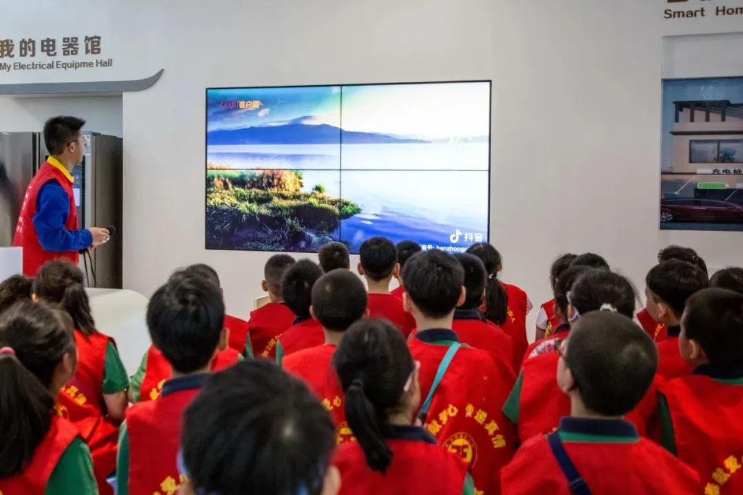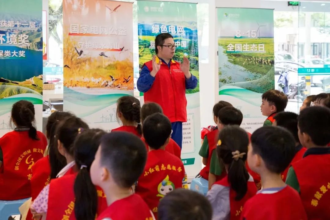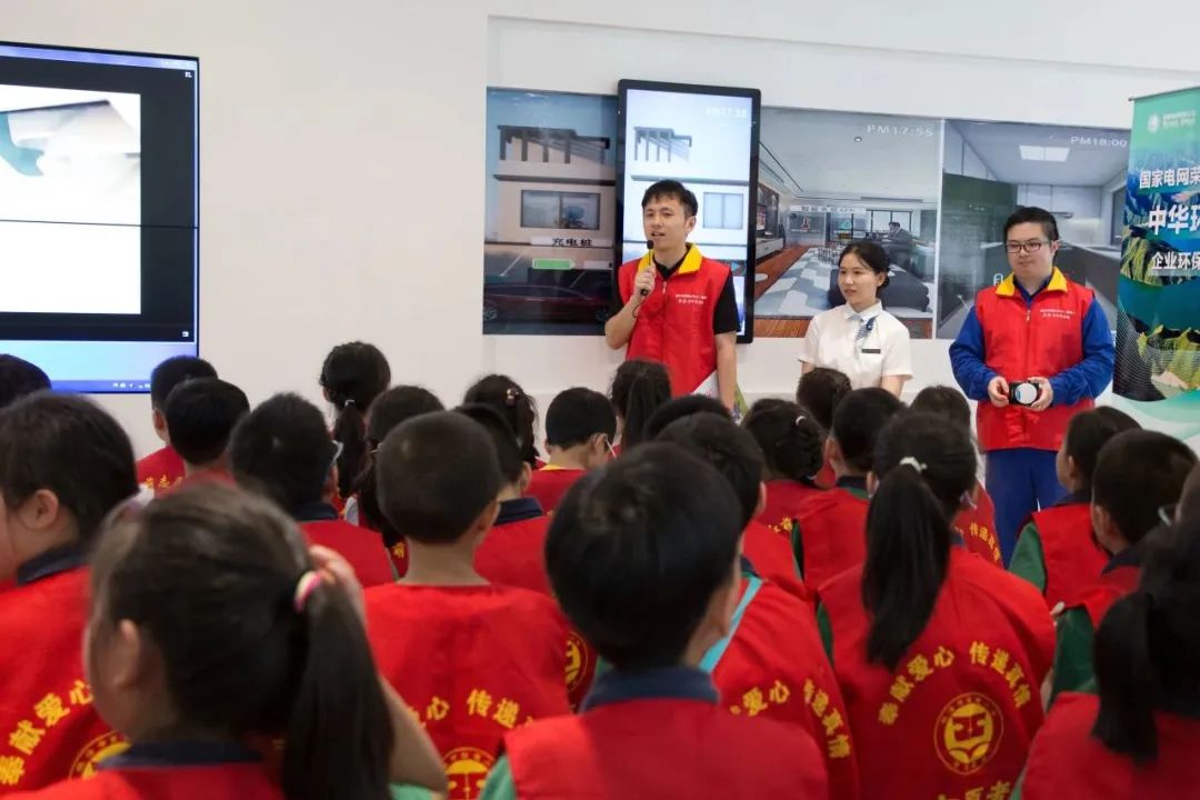 在营业大厅里,工作人员带领同学们共同回顾了此次活动中遇见的各种电力设备,对家庭用电的不良习惯进行“找茬”,同时集体观看绿色用电宣传视频《为生活做减法 为地球做加法》,了解了国家电网公司为践行“双碳”目标建立的“候鸟生命线”、“生命鸟巢”和“绿电方舟”项目。