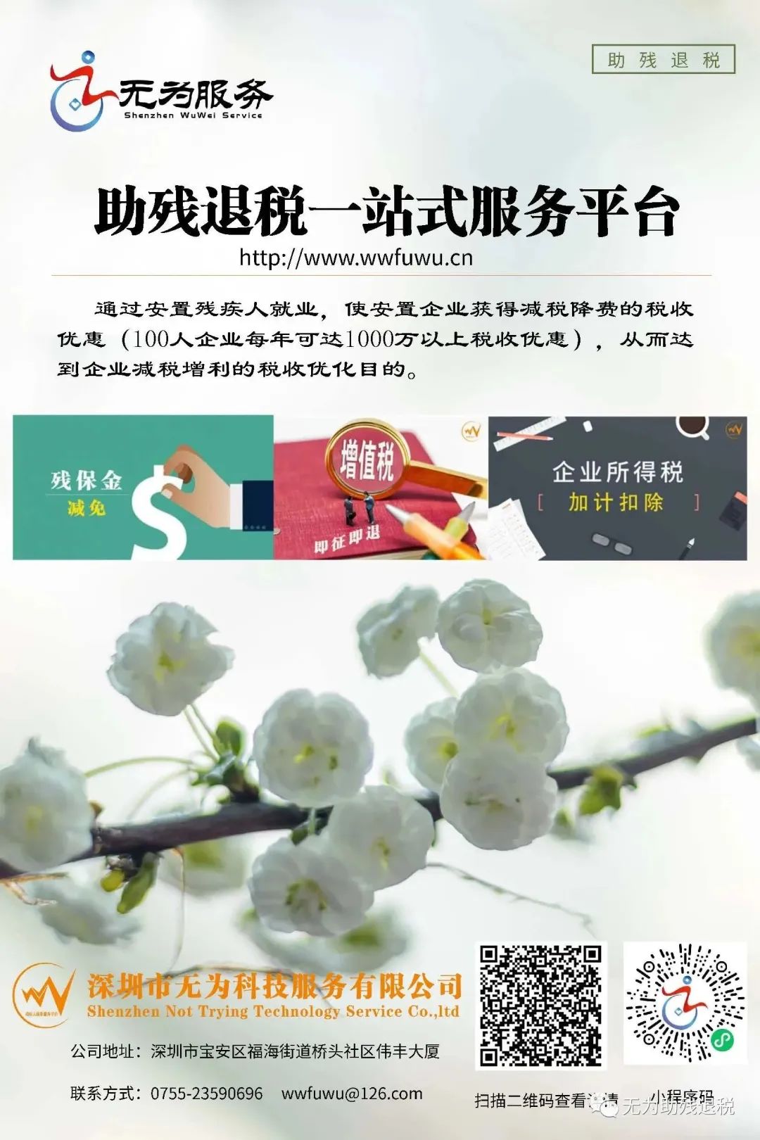 深圳市无为科技服务有限公司是一家致力于推广残疾人集中就业政策的公司,其经营理念是“让残疾人得到更好的就业机会和生活保障”。公司响应国家政策,积极安置残疾人就业,并通过一系列的政策优惠和扶持措施,为残疾人提供更好的就业环境和机会。