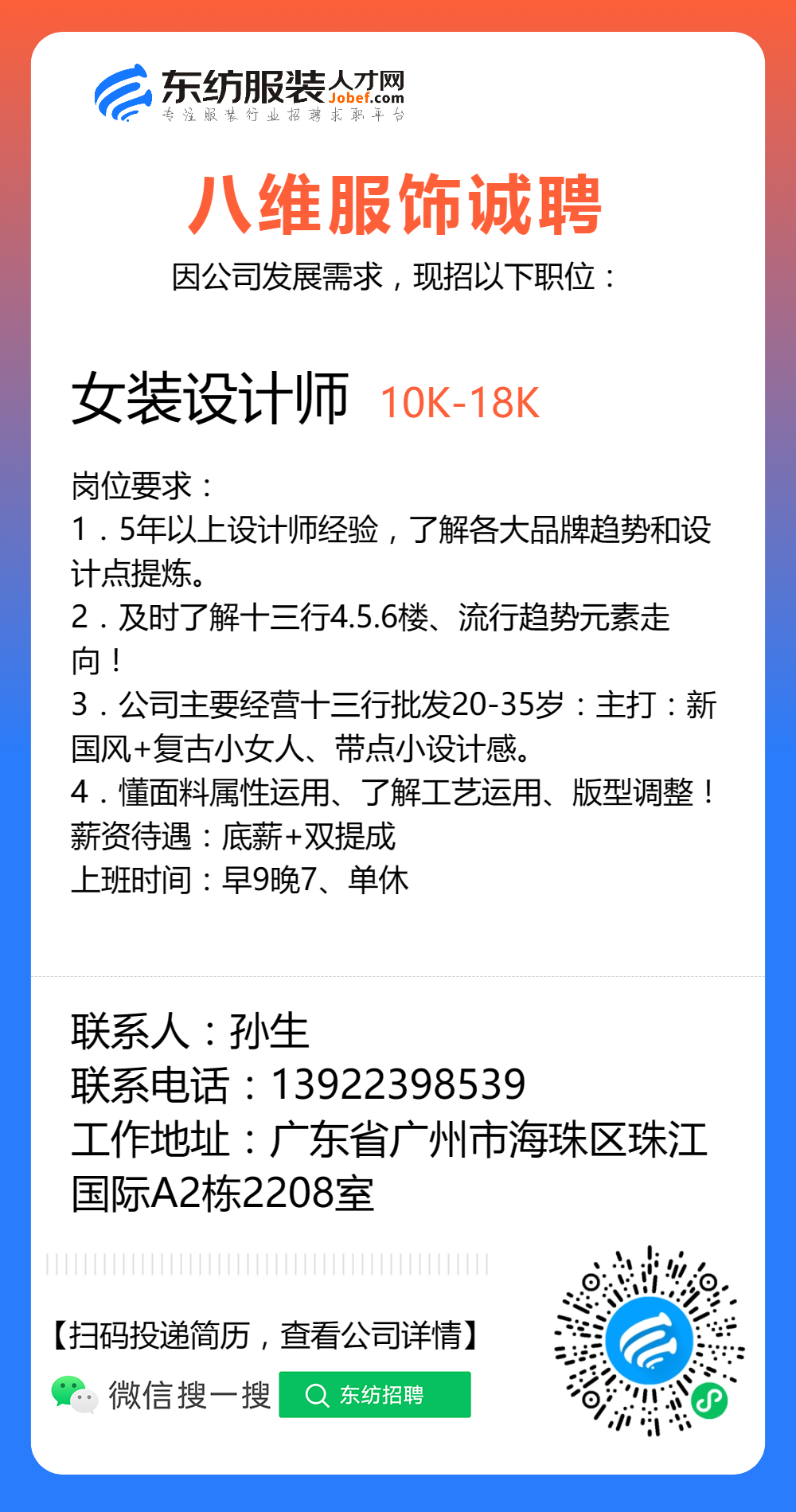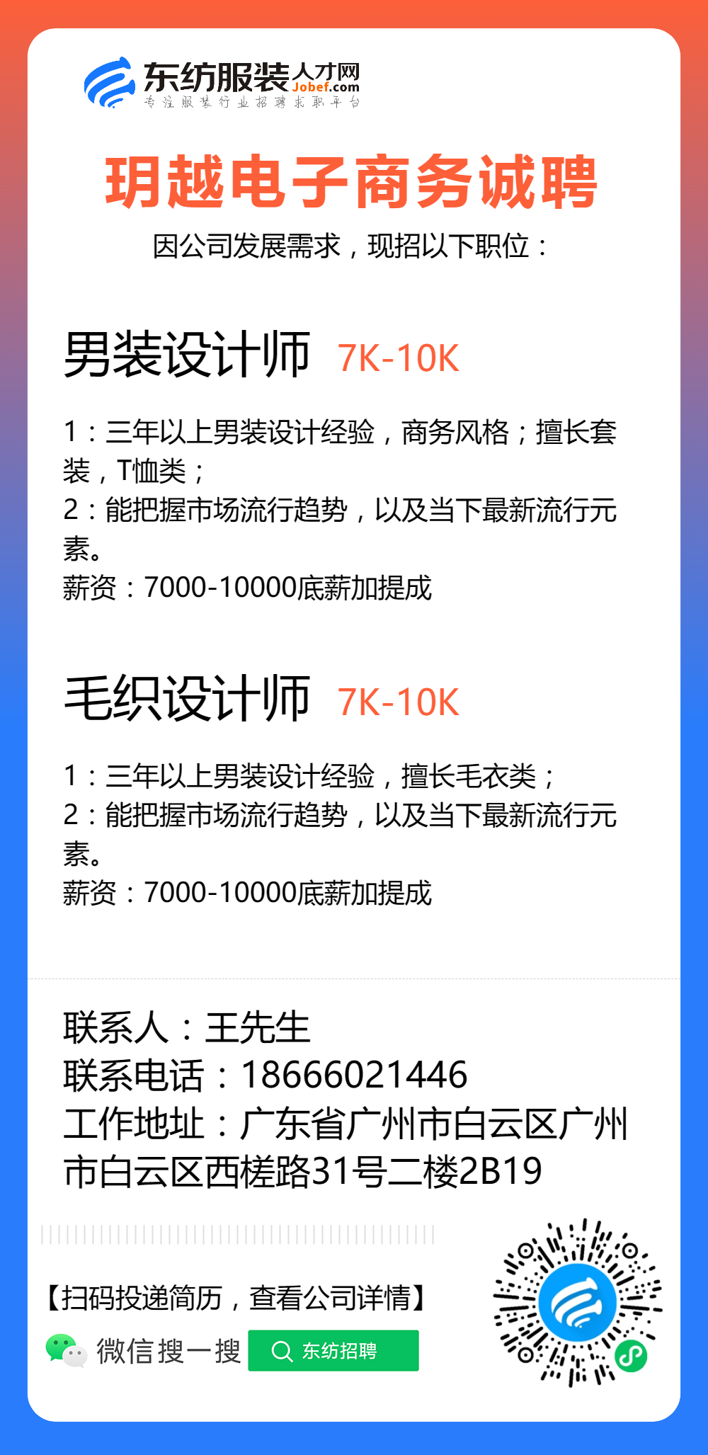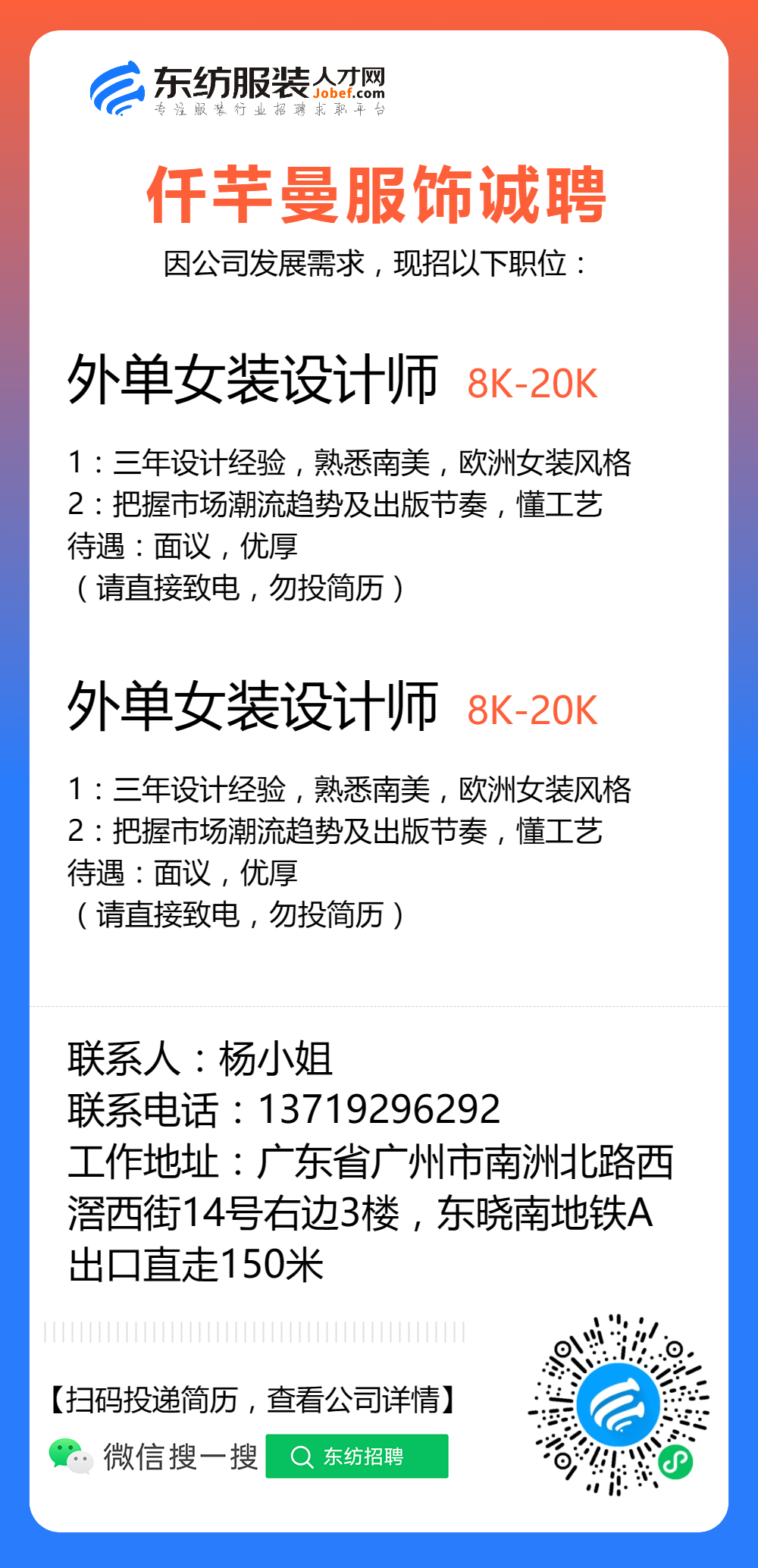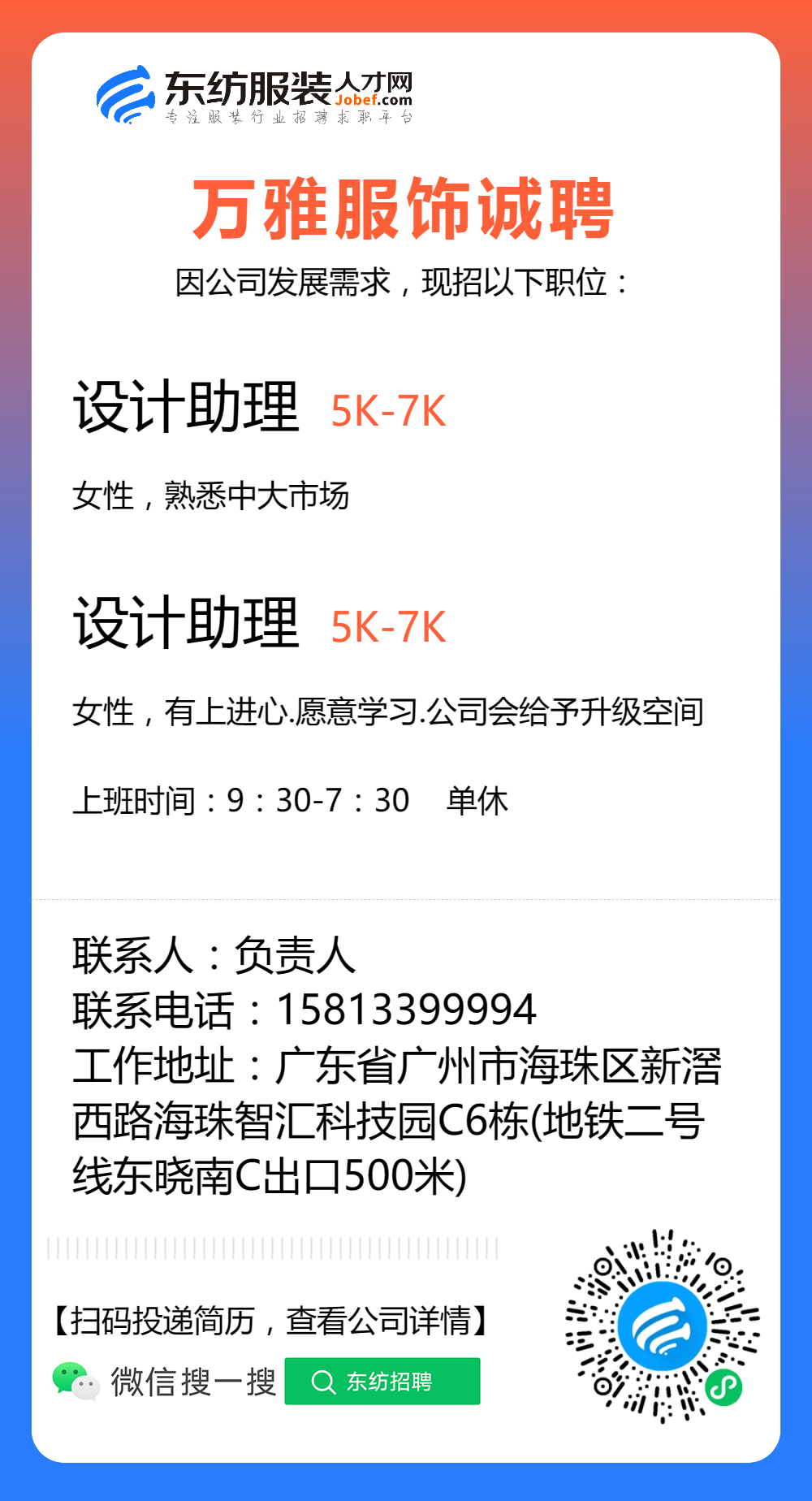 服装招聘·设计类丨8. 19 号,女装设计师、男装设计师、童装设计师、设计助理.....