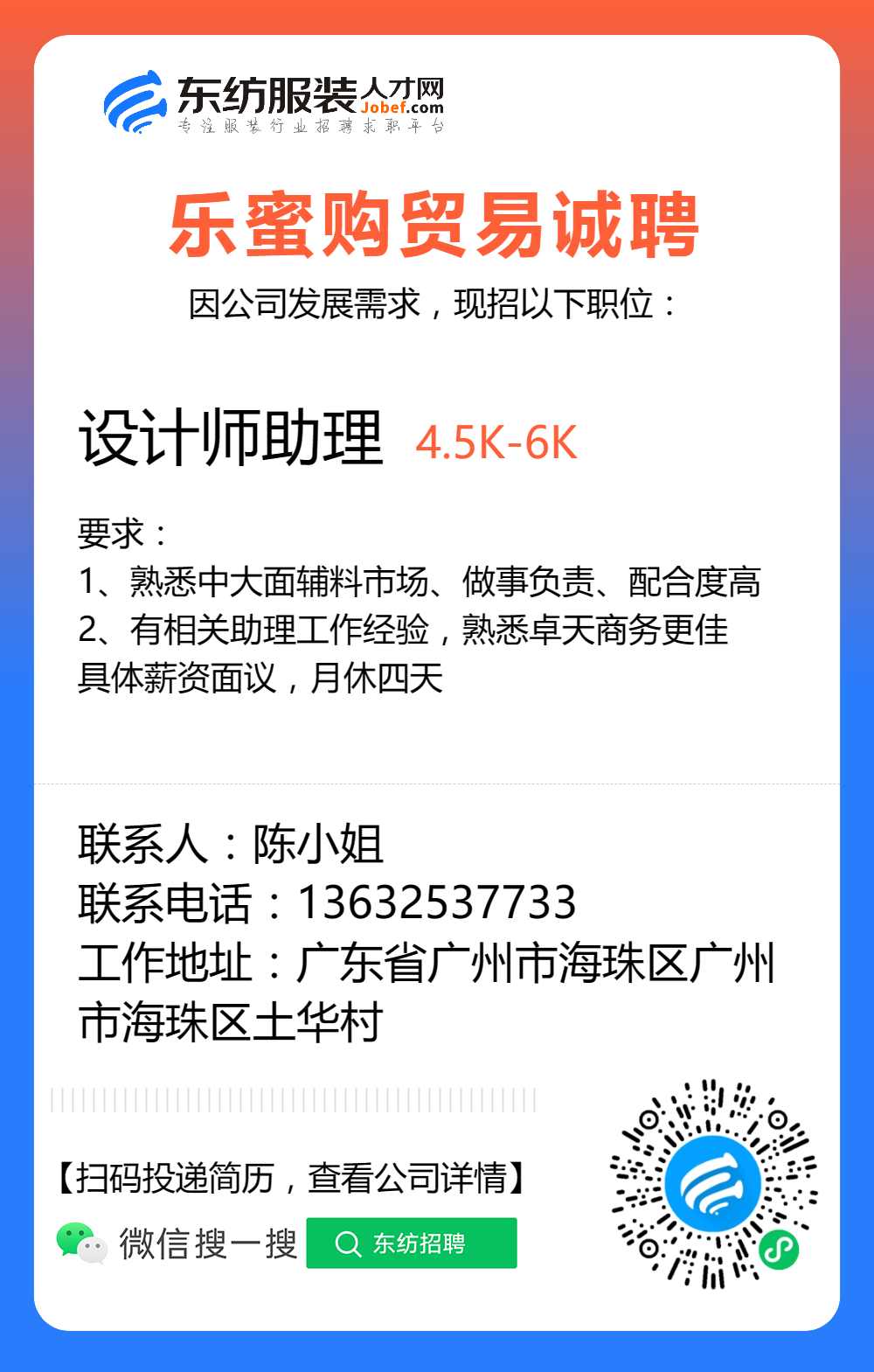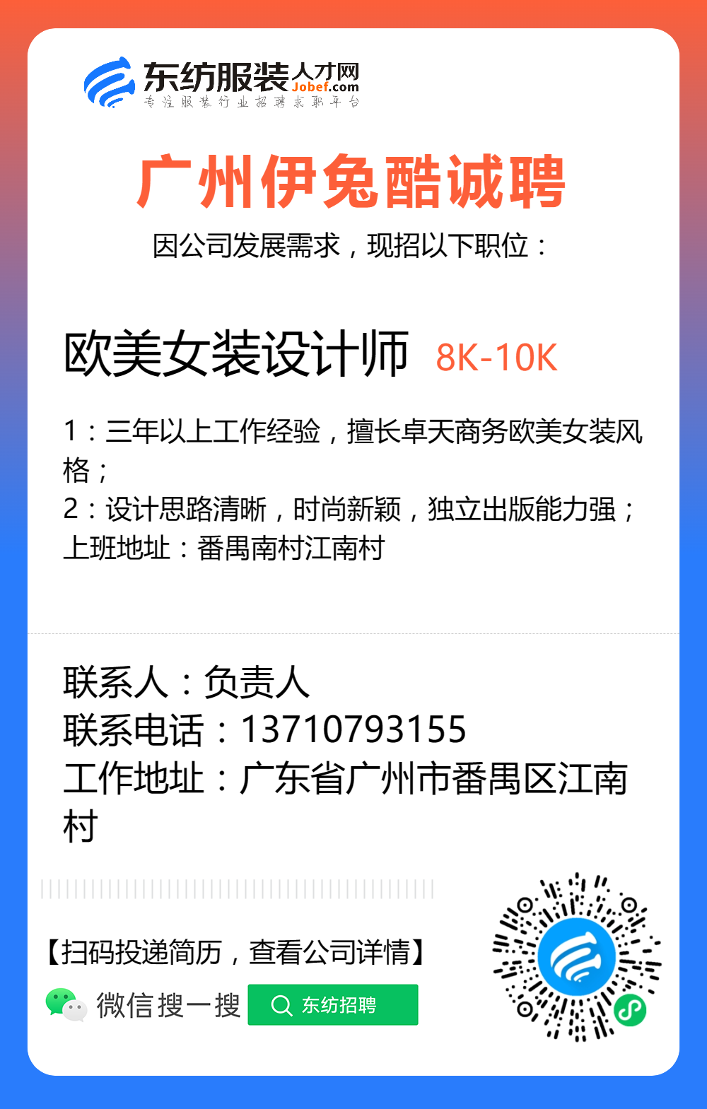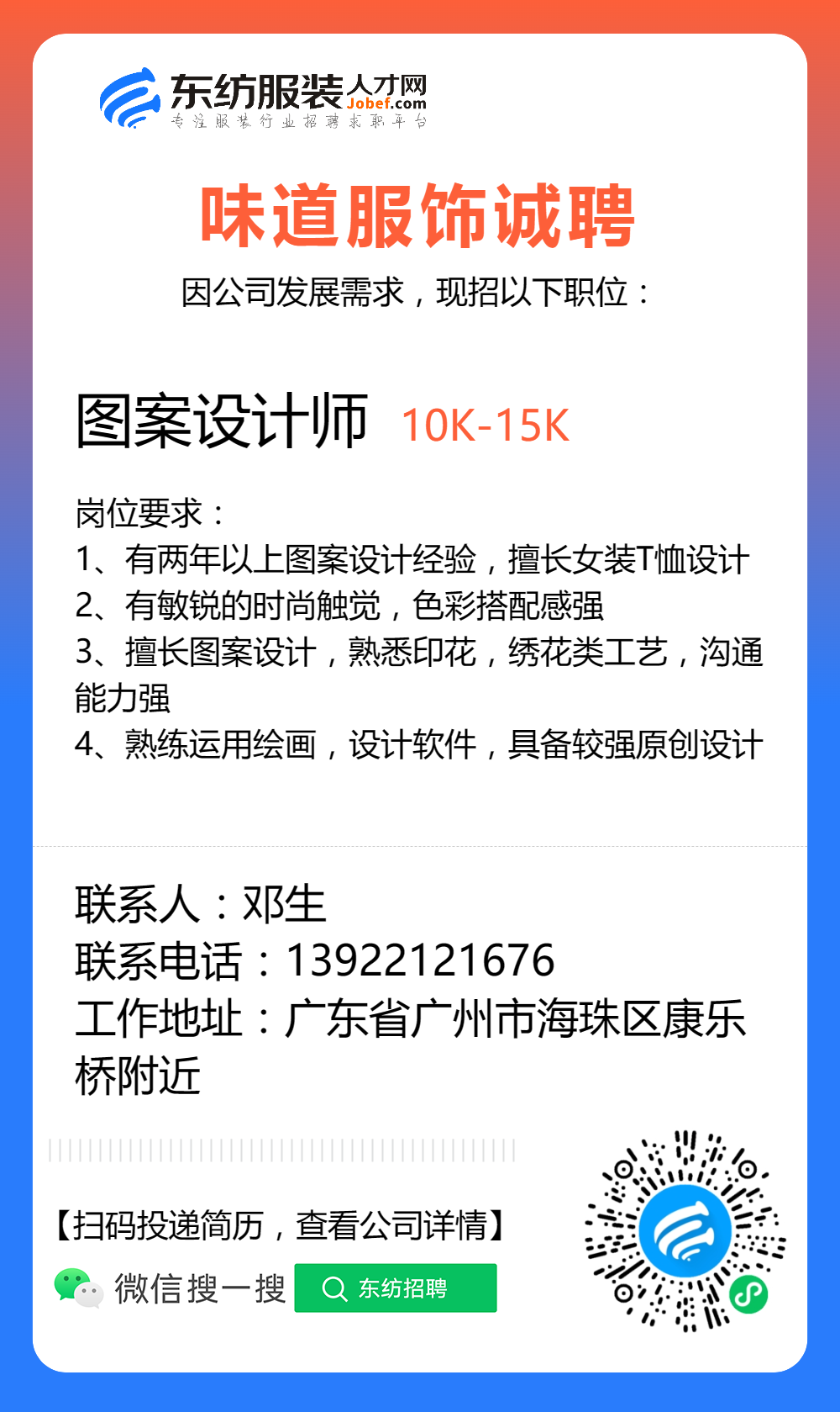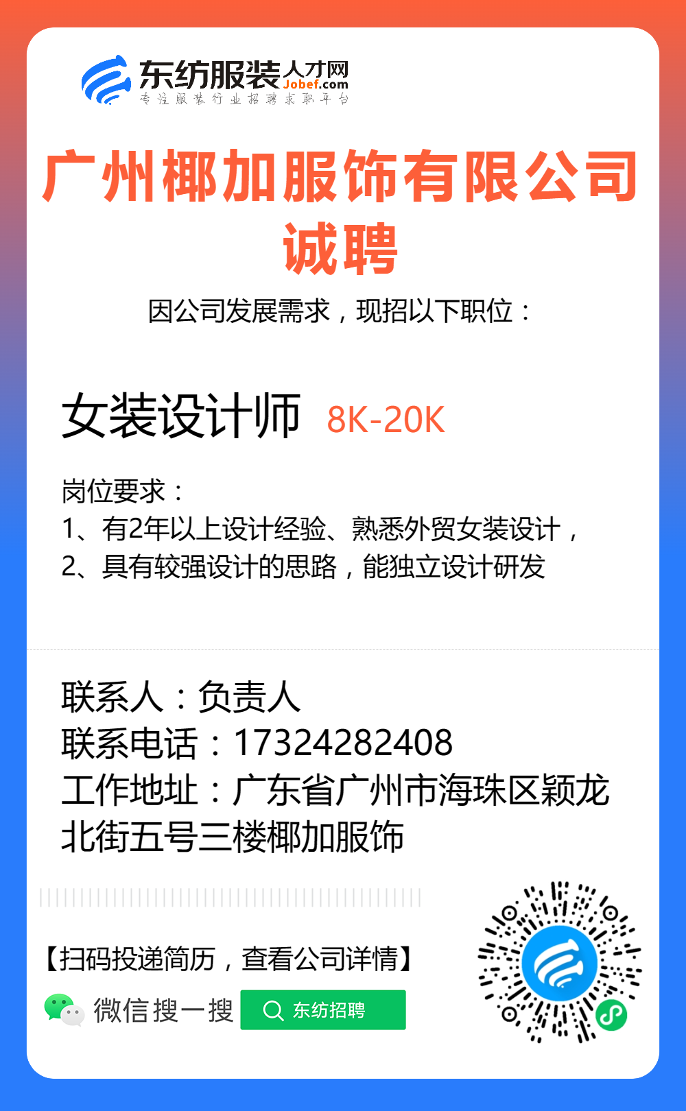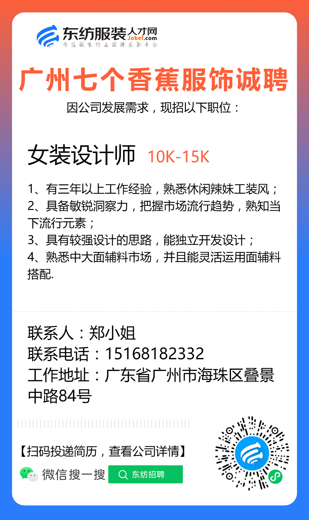 服装招聘·设计类丨8. 19 号,女装设计师、男装设计师、童装设计师、设计助理.....