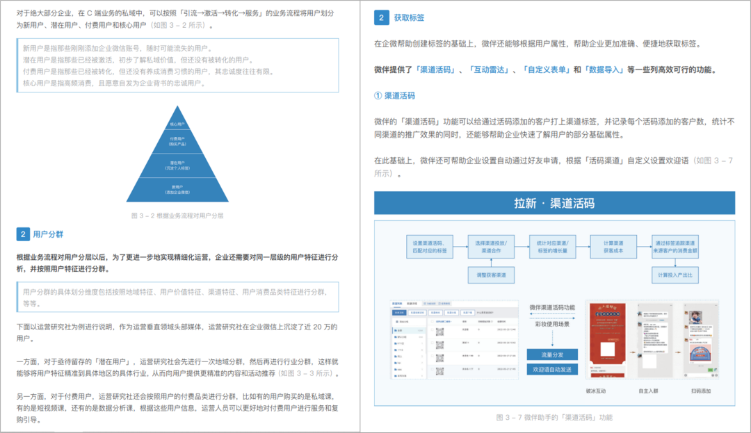 再比如,当你被要求做私域引流时,这本手册会结合微伴助手的渠道活码和社群活码能力,进行方法和案例讲解,帮助你提高引流效率和效果。