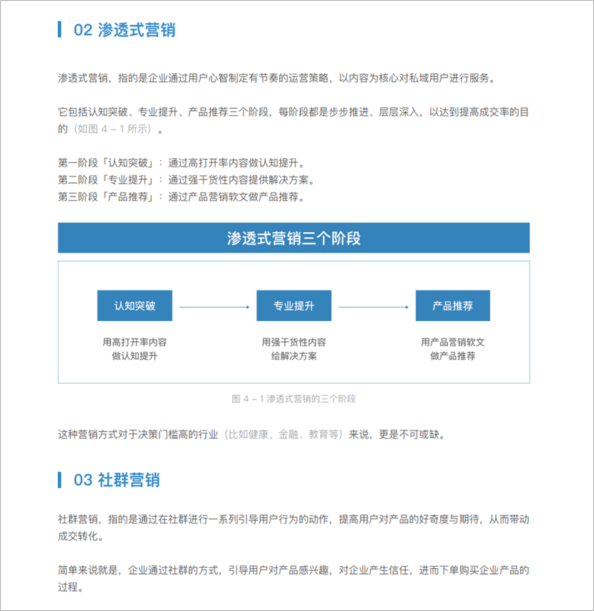 比如,当你被要求做私域转化时,这本手册就可以帮助到你,如何通过社群、1v1、朋友圈对用户进行分层级和分阶段的高效转化。