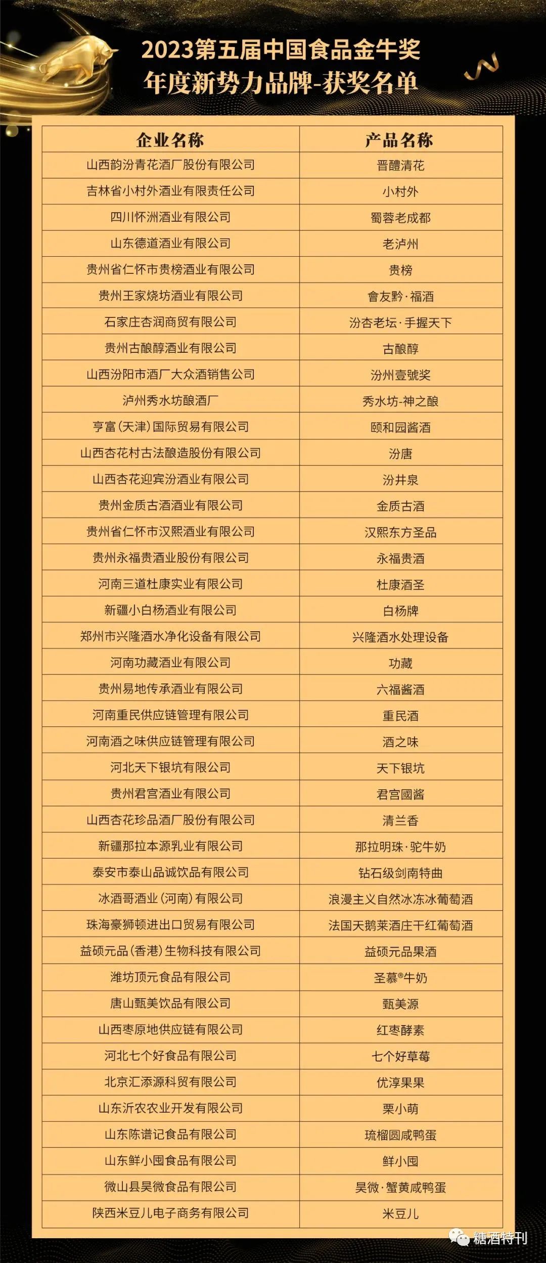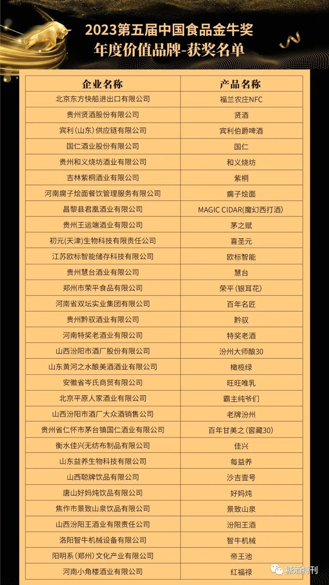 2023第五届中国食品金牛奖颁奖盛典完美收官!