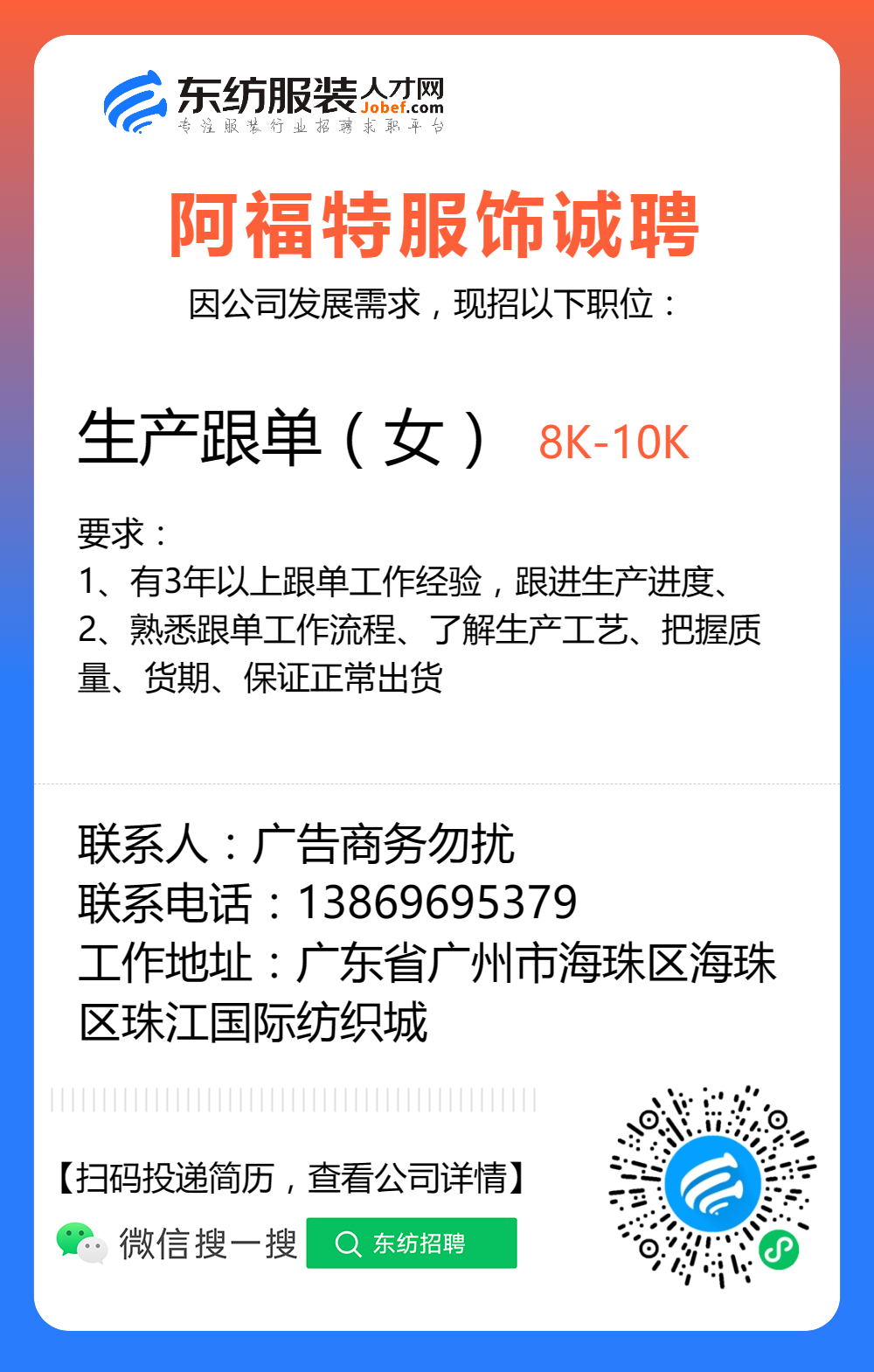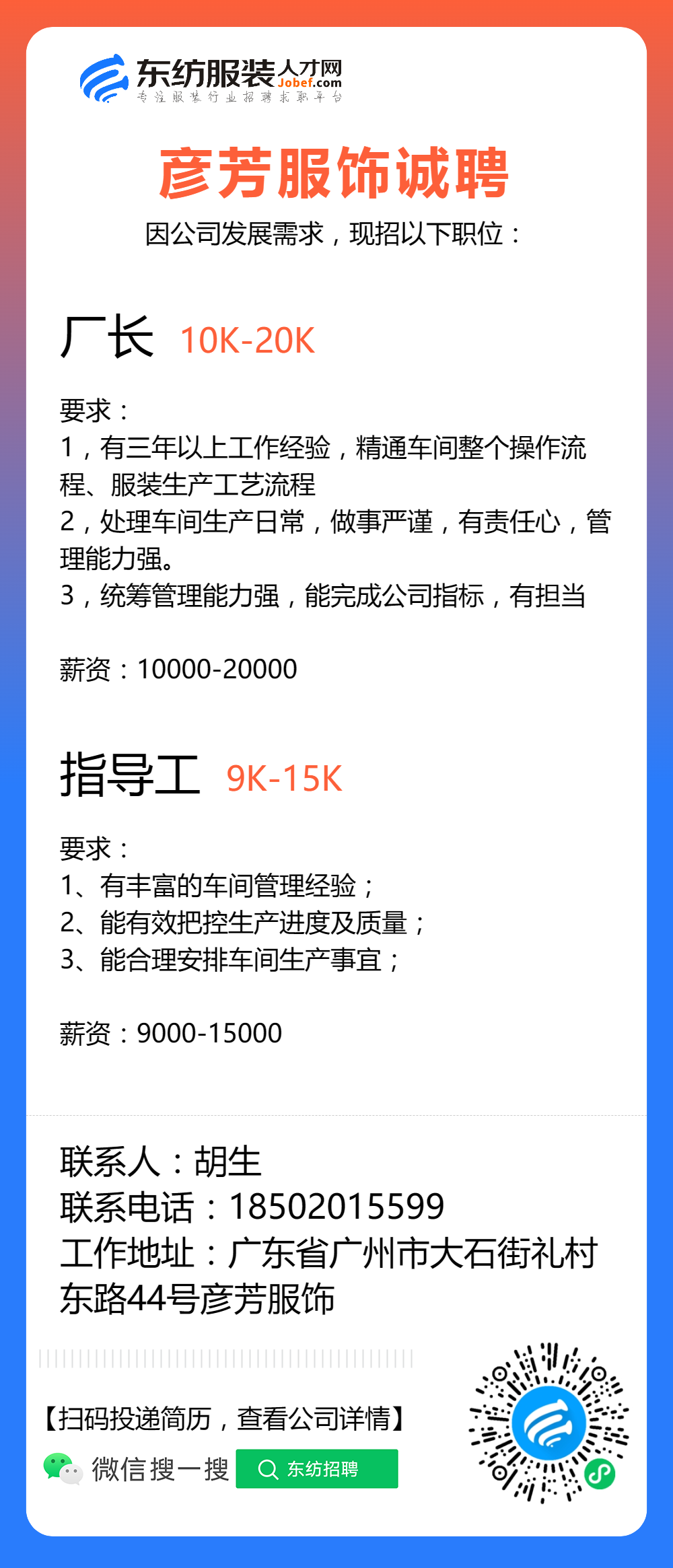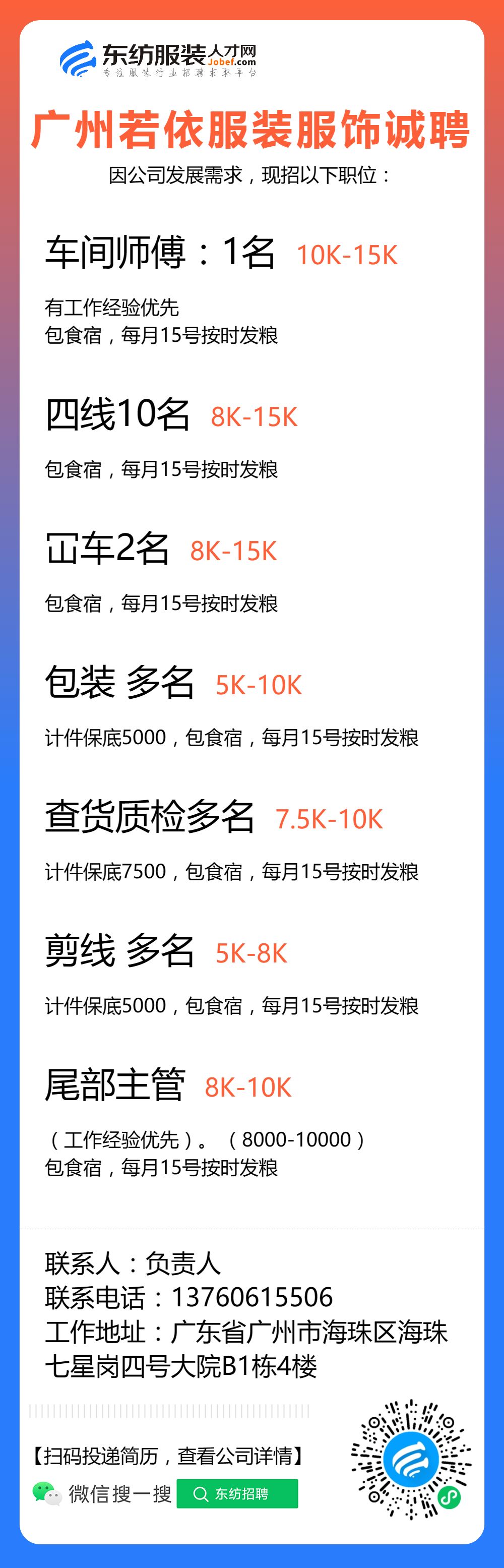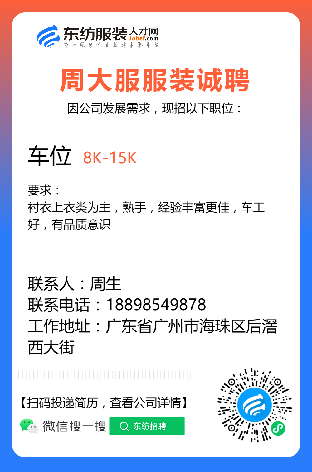 服装招聘·工厂类丨8. 19 号,跟单、采购、车位、裁床、尾部……
