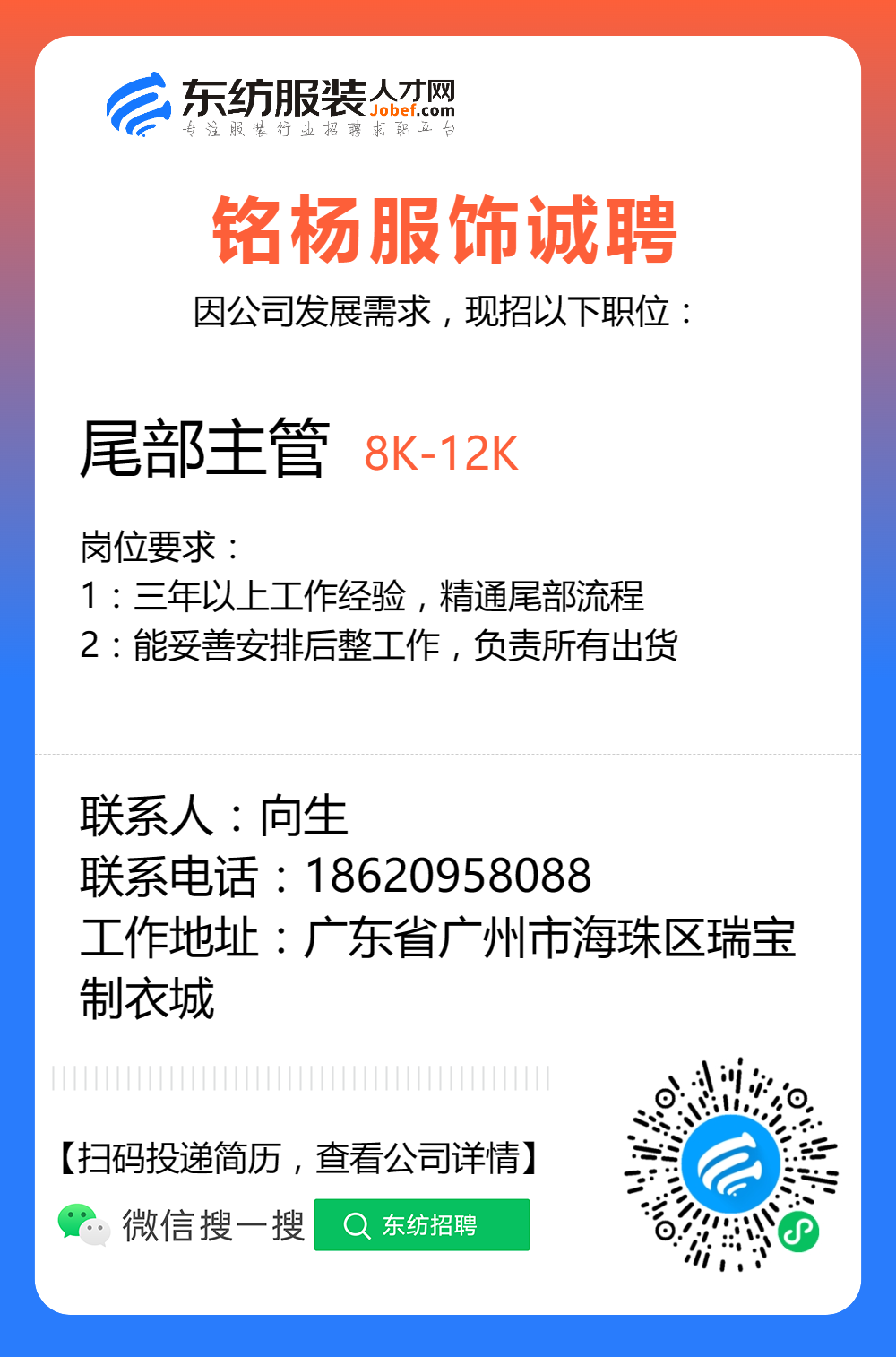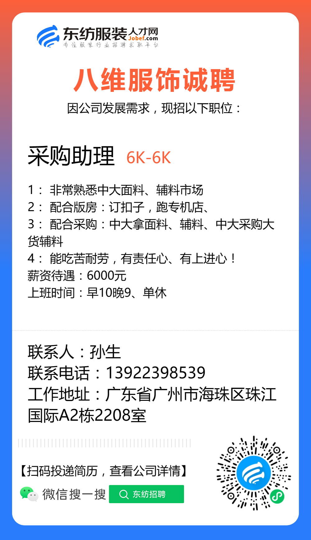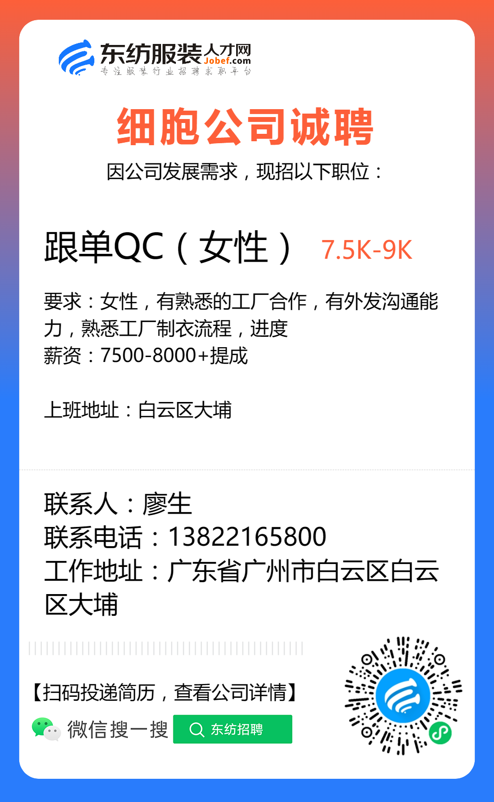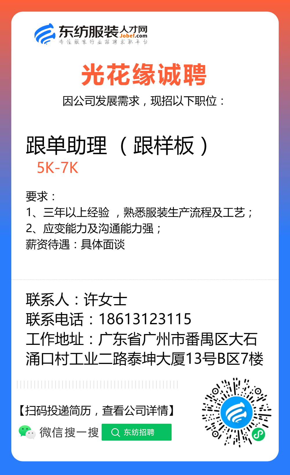 服装招聘·工厂类丨8. 19 号,跟单、采购、车位、裁床、尾部……