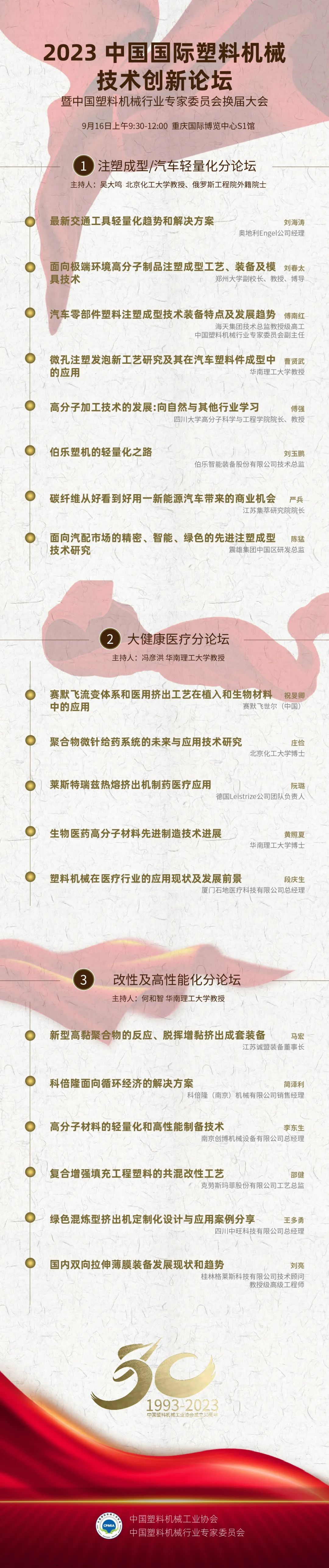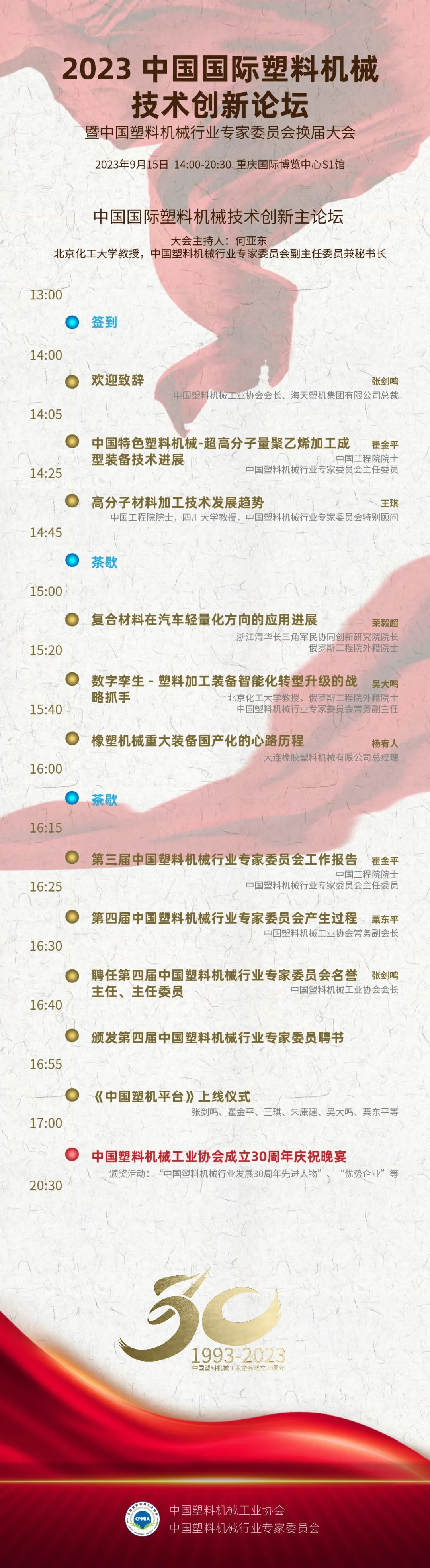 2023中国国际塑料机械技术创新论坛暨中国塑料机械行业专家委员会换届大会日程安排