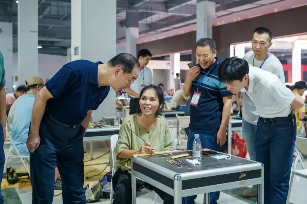 据悉,本次活动申报人数有156人,经核查资历业绩情况后,有152人符合条件,其中:24人经评审被直接破格认定,128人参加实物作品考核及实操技能考核,共设雕刻组、综合组、花画组、玉石雕组等四个大组别,由21名省大师、高校教授、行业专家等组成的专家评委组。
