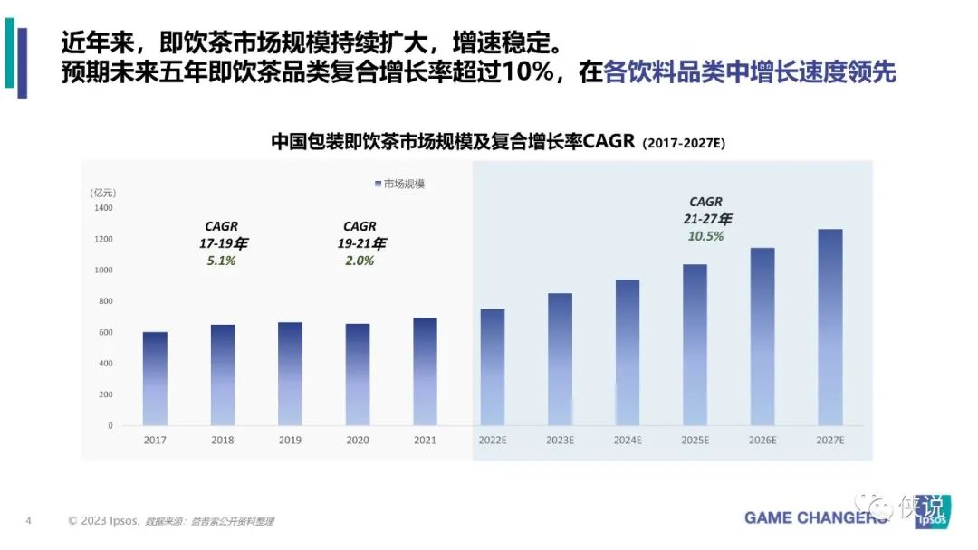 益普索发布的《2023年包装即饮茶和植物饮料市场和消费者洞察分析》将从包装即饮茶和植物饮料两个品类分别入手,探讨当下宏观市场发展情况,对不同年龄层、收入水平、生活方式的消费者的需求进行洞察。