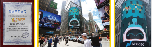 菠萝树经过“中美品牌事物发展协会”推荐在2018年6月18日在美国纳斯达克证券交易所大屏进行荣誉展播。