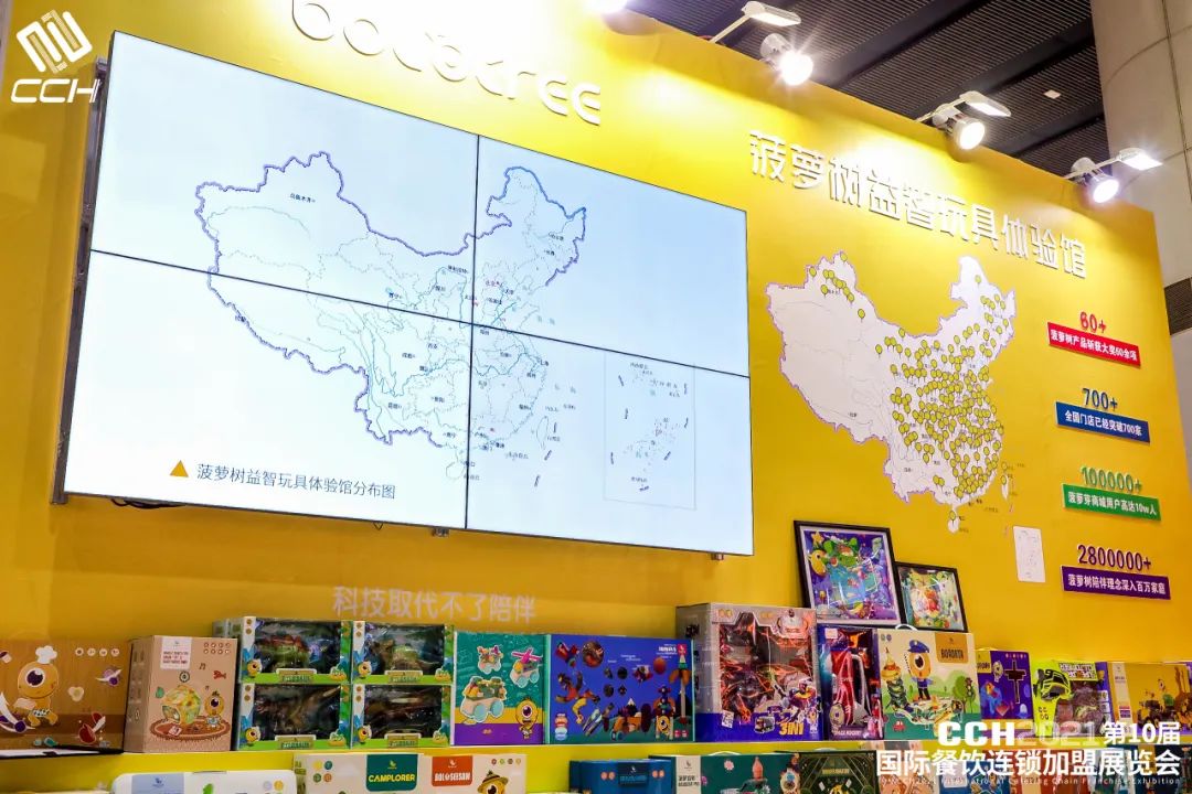 目前菠萝树益智玩具体验馆全国有800多家加盟店,每月以新增50+门店的数量快速发展中。