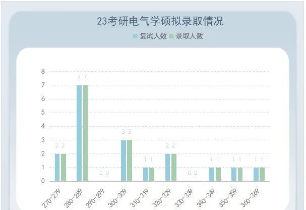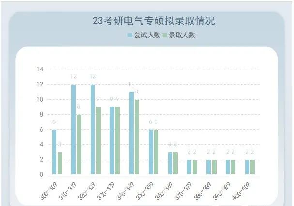2023考研专硕复试线为国家线,进入复试67人,录取57人(包括1个士兵计划电气专硕),录取最高分407分,最低分306分,平均分342分。350分+录取率100%!