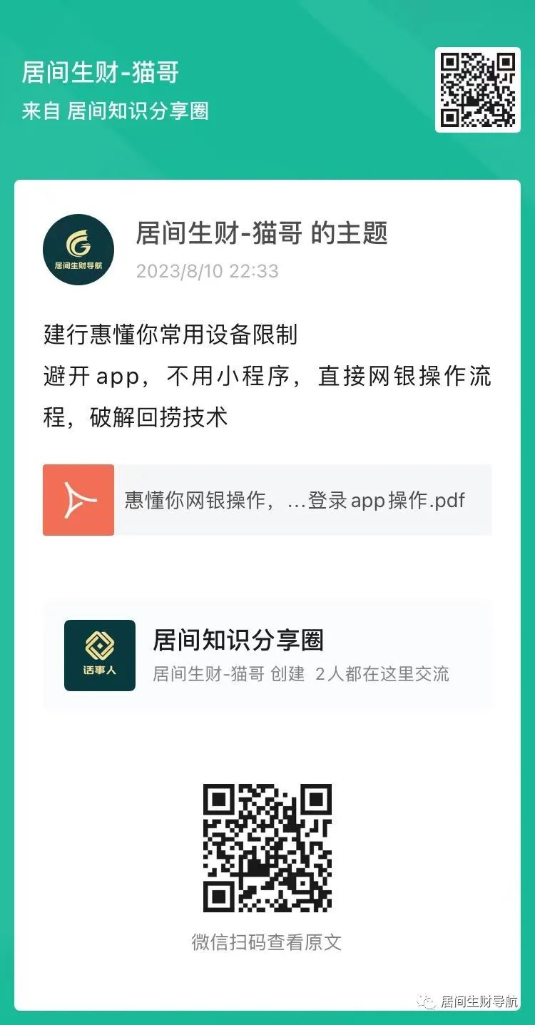 ▲点击上方卡片关注我,回复“7”,即可获得《建行惠懂你常用设备限制登陆破解》。