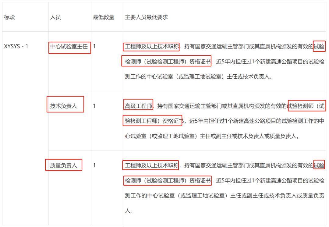 主要人员最低要求:
