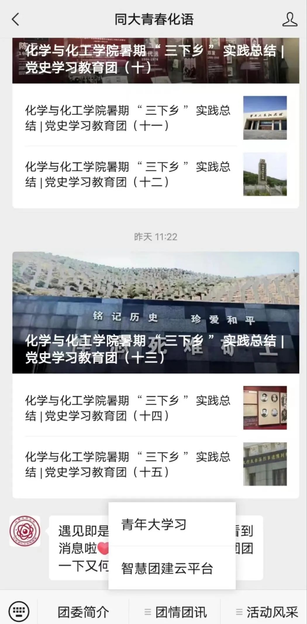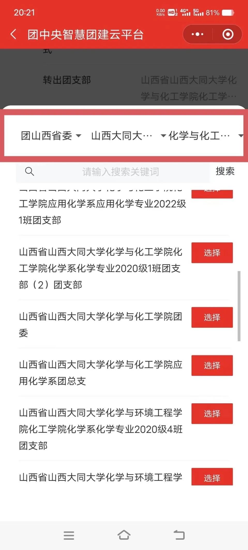 依次选择“团山西省委”、“山西大同大学团委”、“化学与化工学院团委”